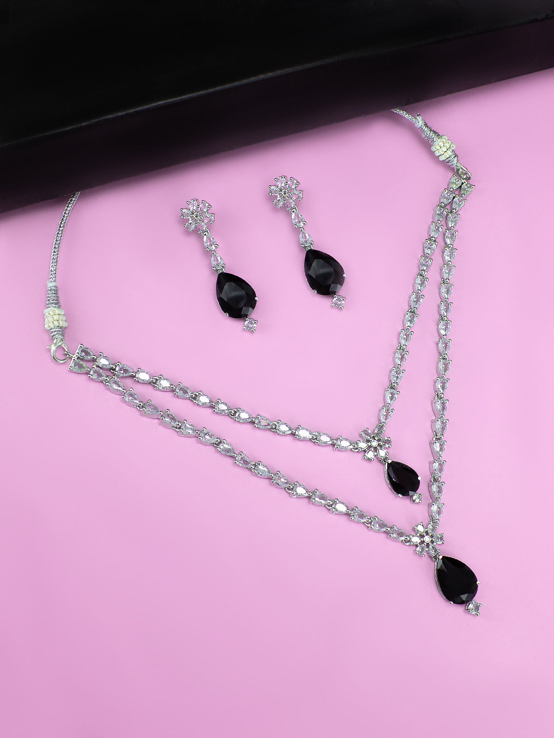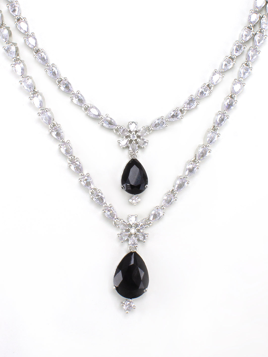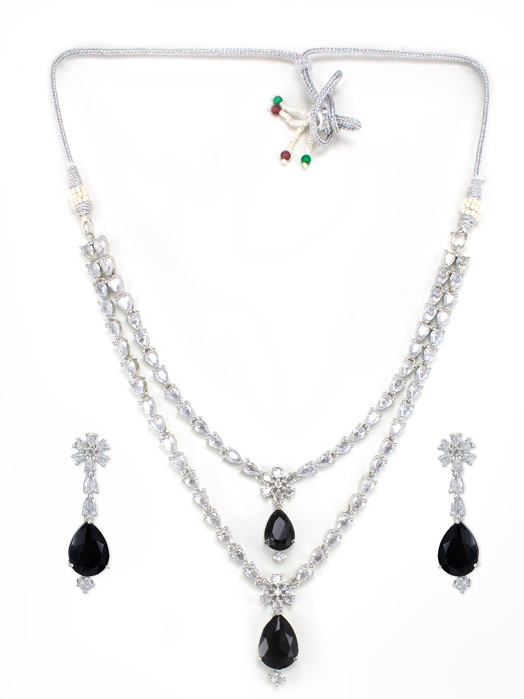 Rhodium Plated Double Layered American Dimaond Studded Jewellery Set