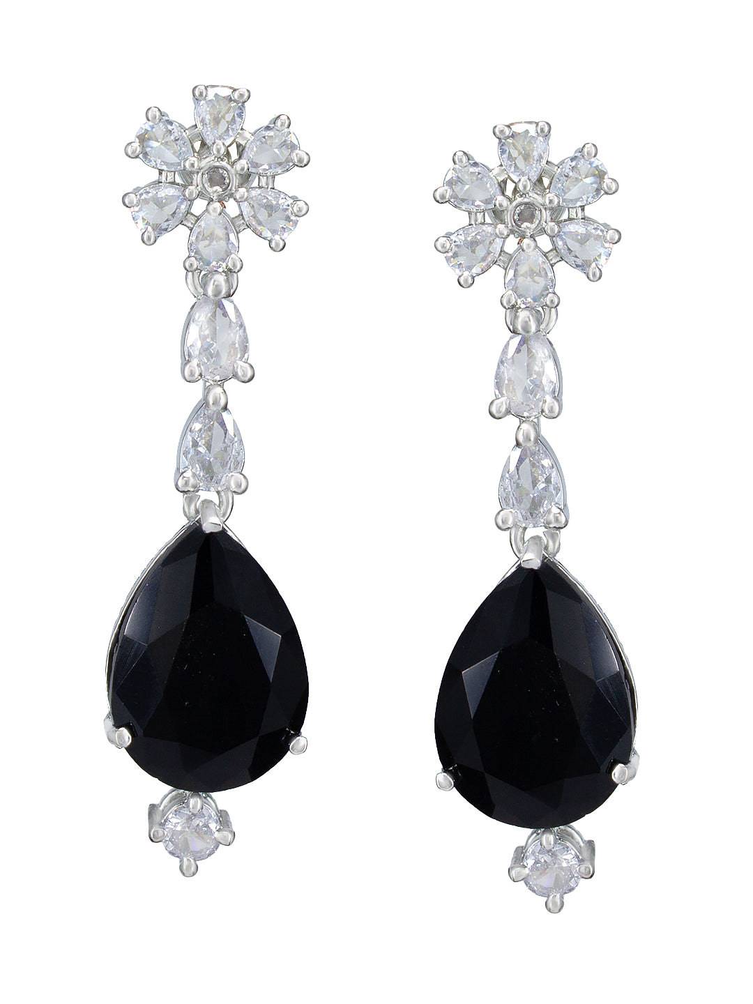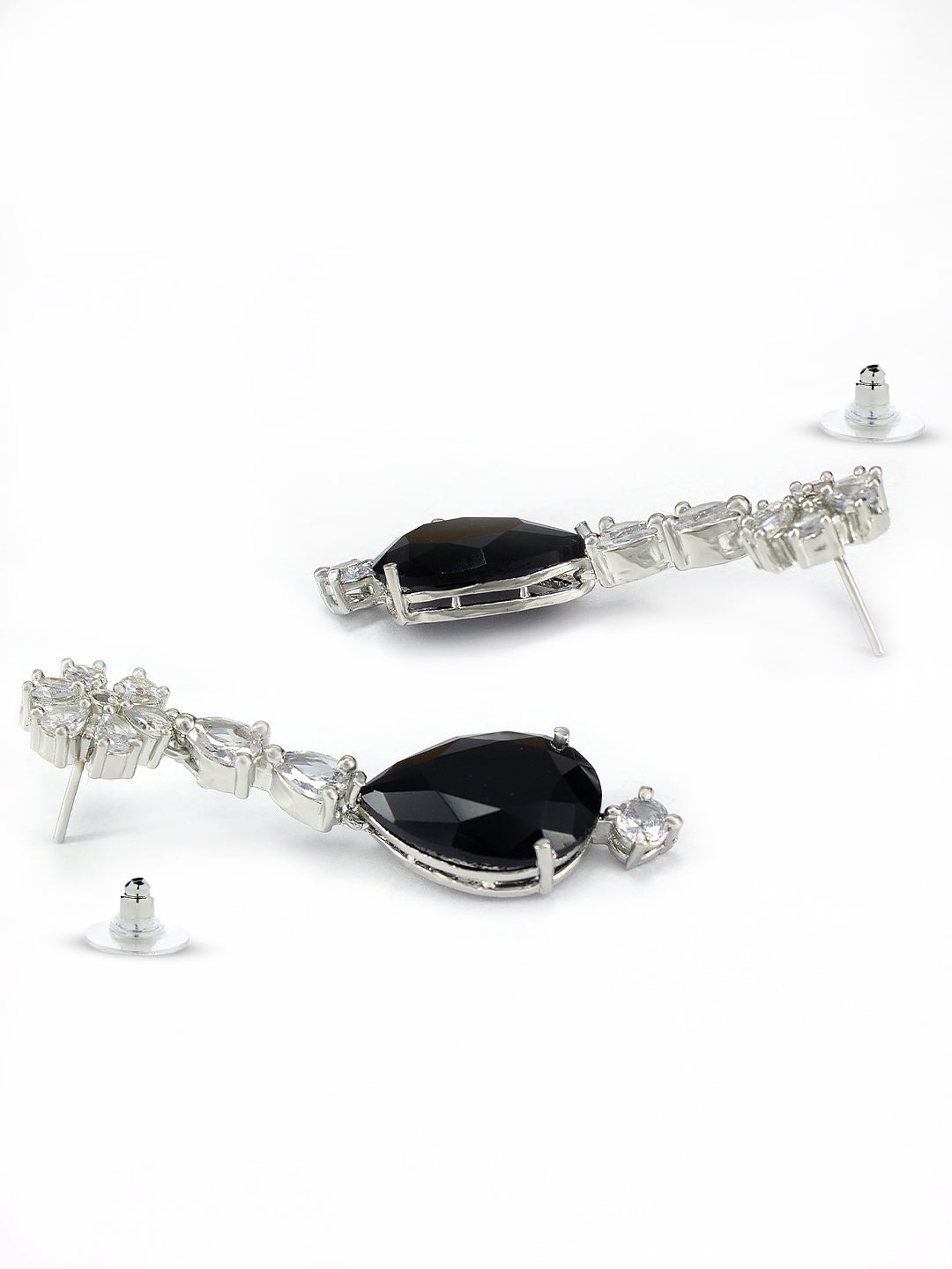 Rhodium Plated Teardrop American Diamond Studded Trendy Pendant Set