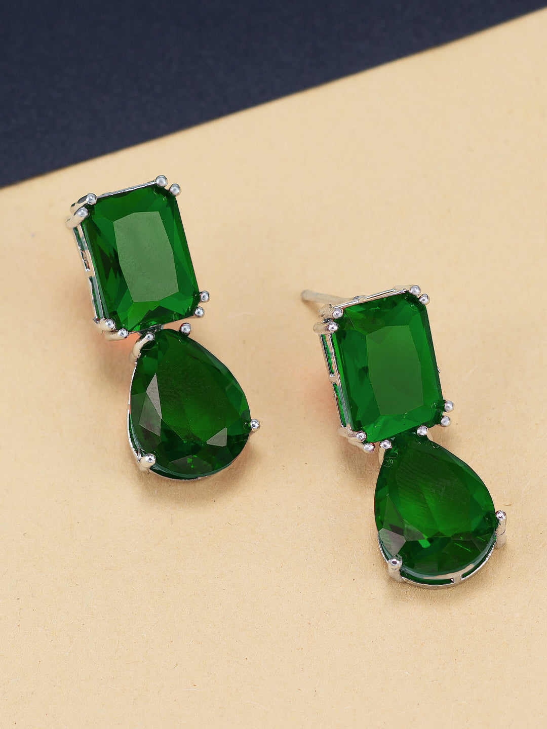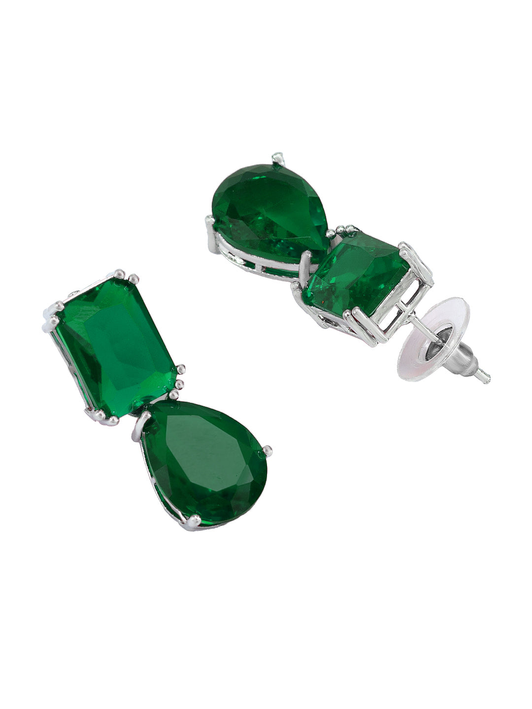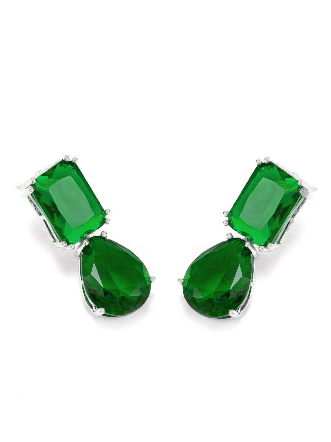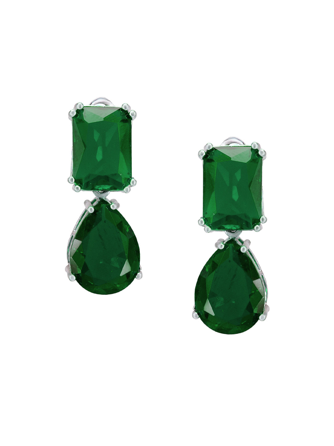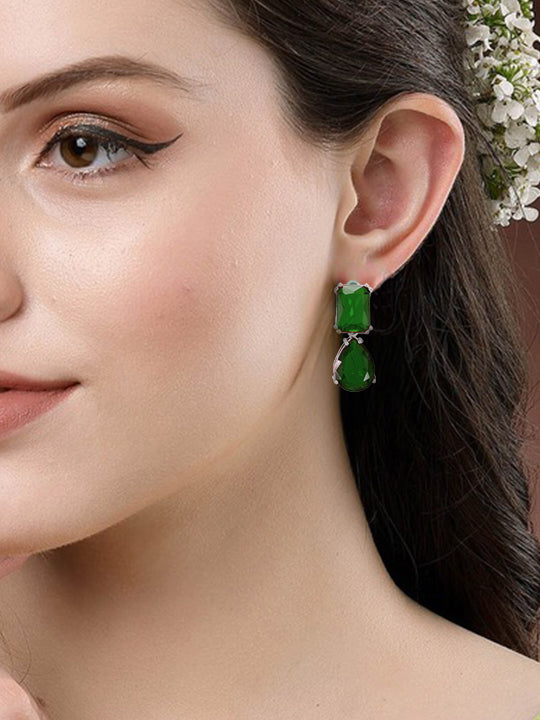 Rhodium Plated Green American Diamond Drop Earrings