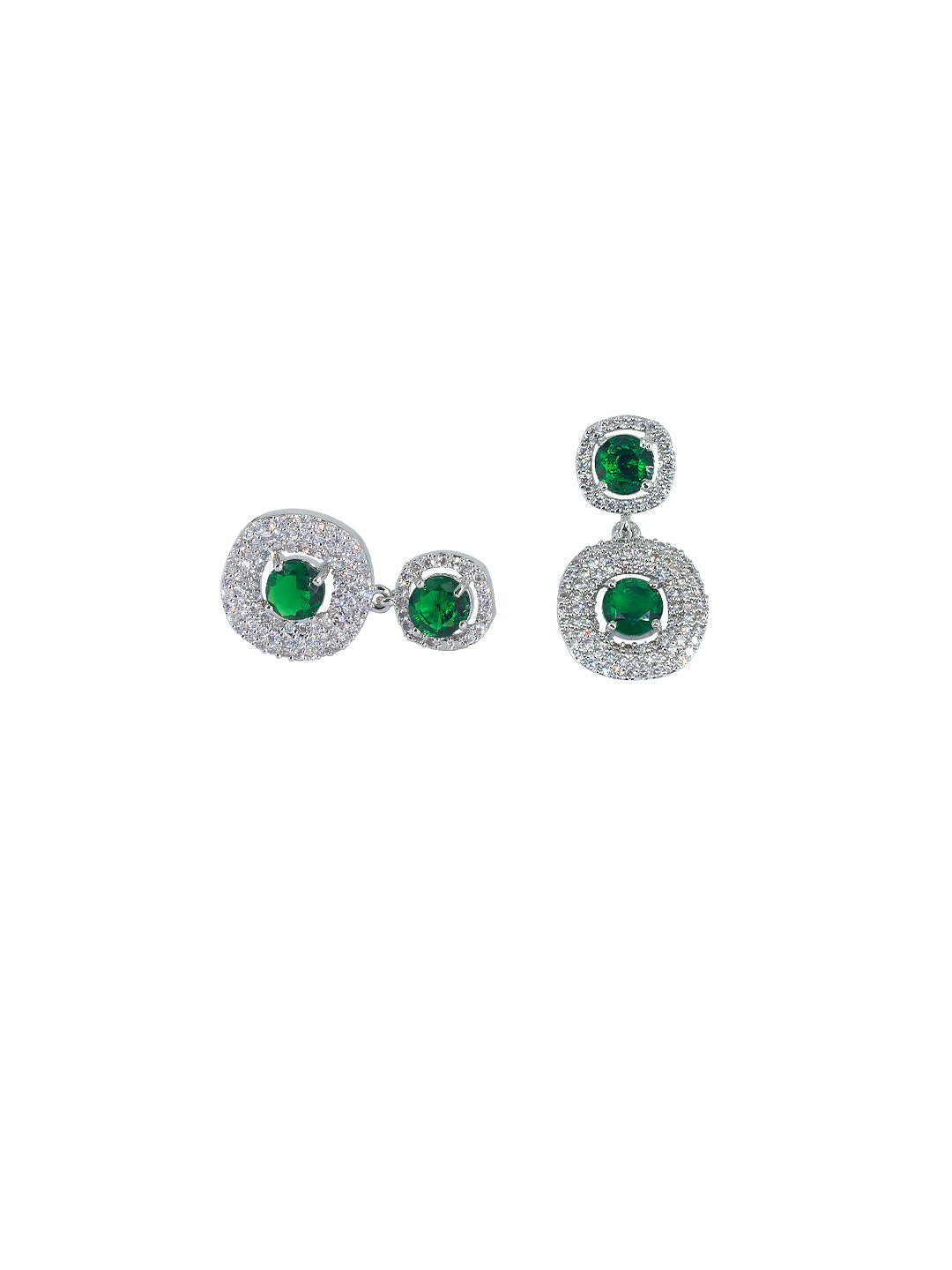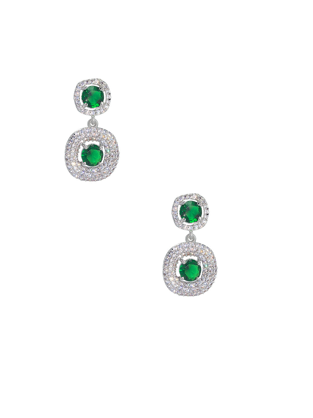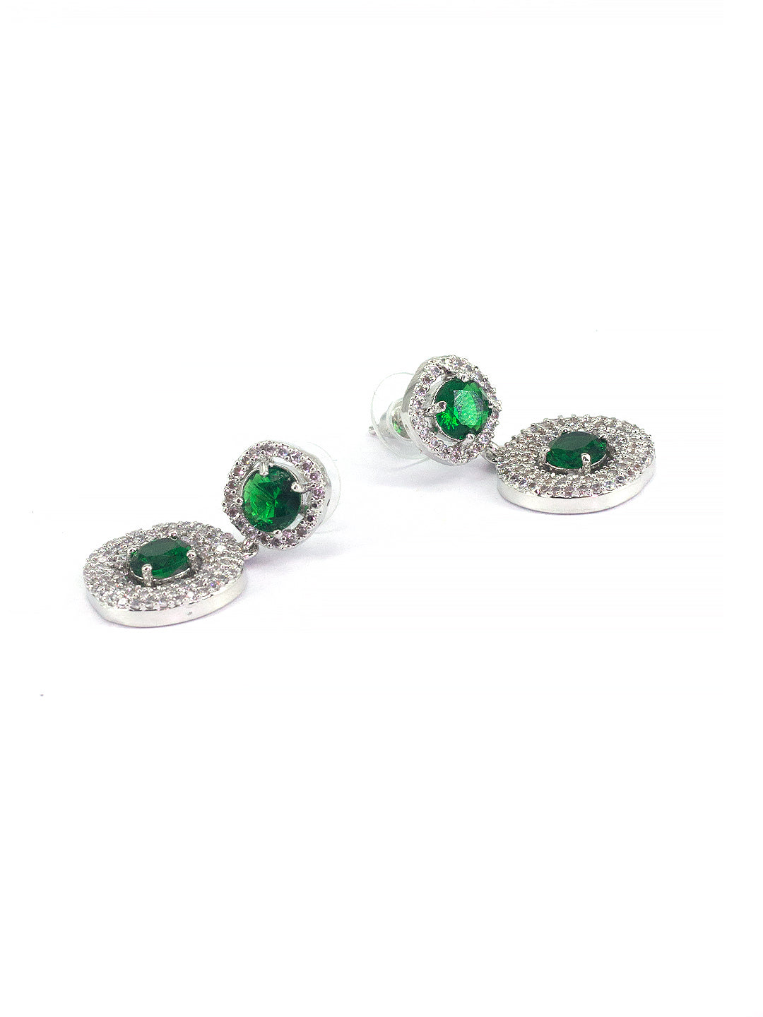 Rhodium Plated Green American Diamond Trendy Drop Earrings