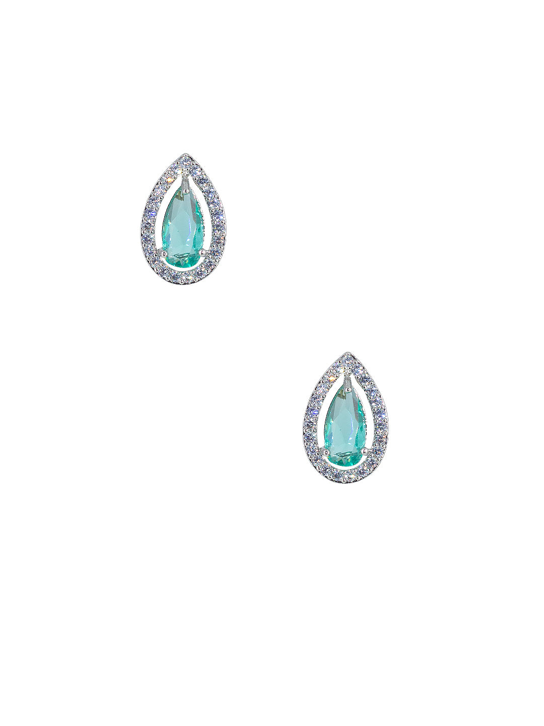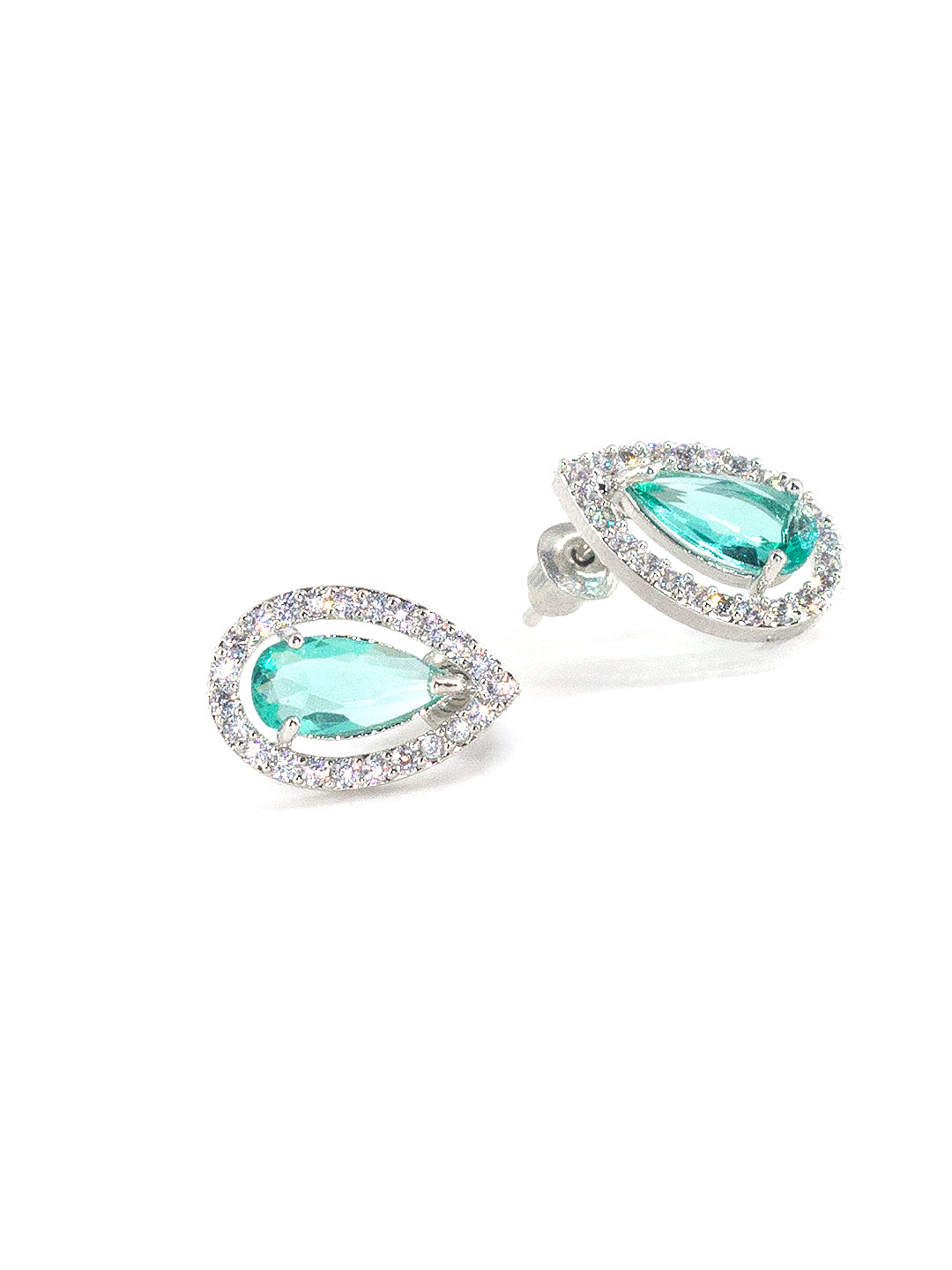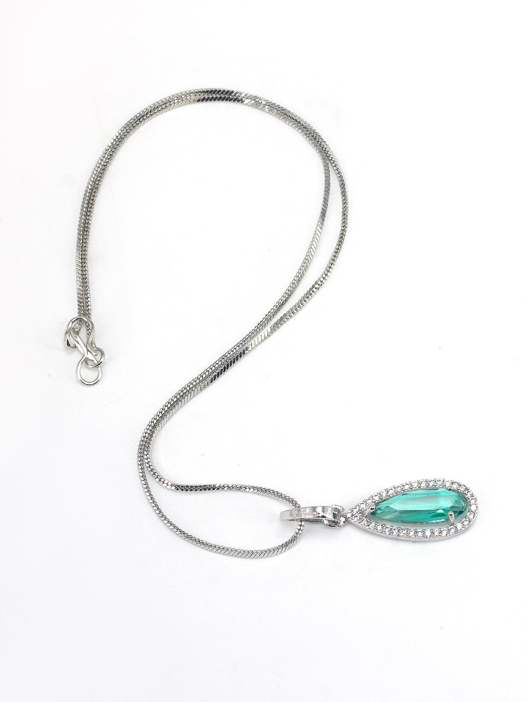 Rhodium Plated Green Drop American Diamond Trendy Pendant Set