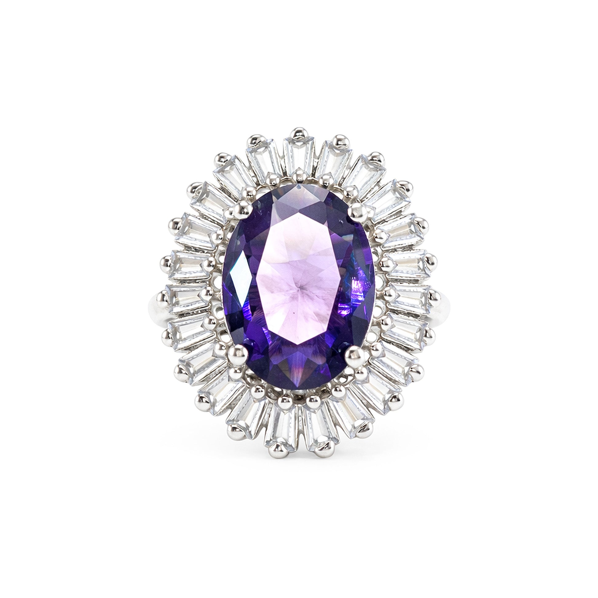 Rhodium Plated Purple AD Finger Ring for Women