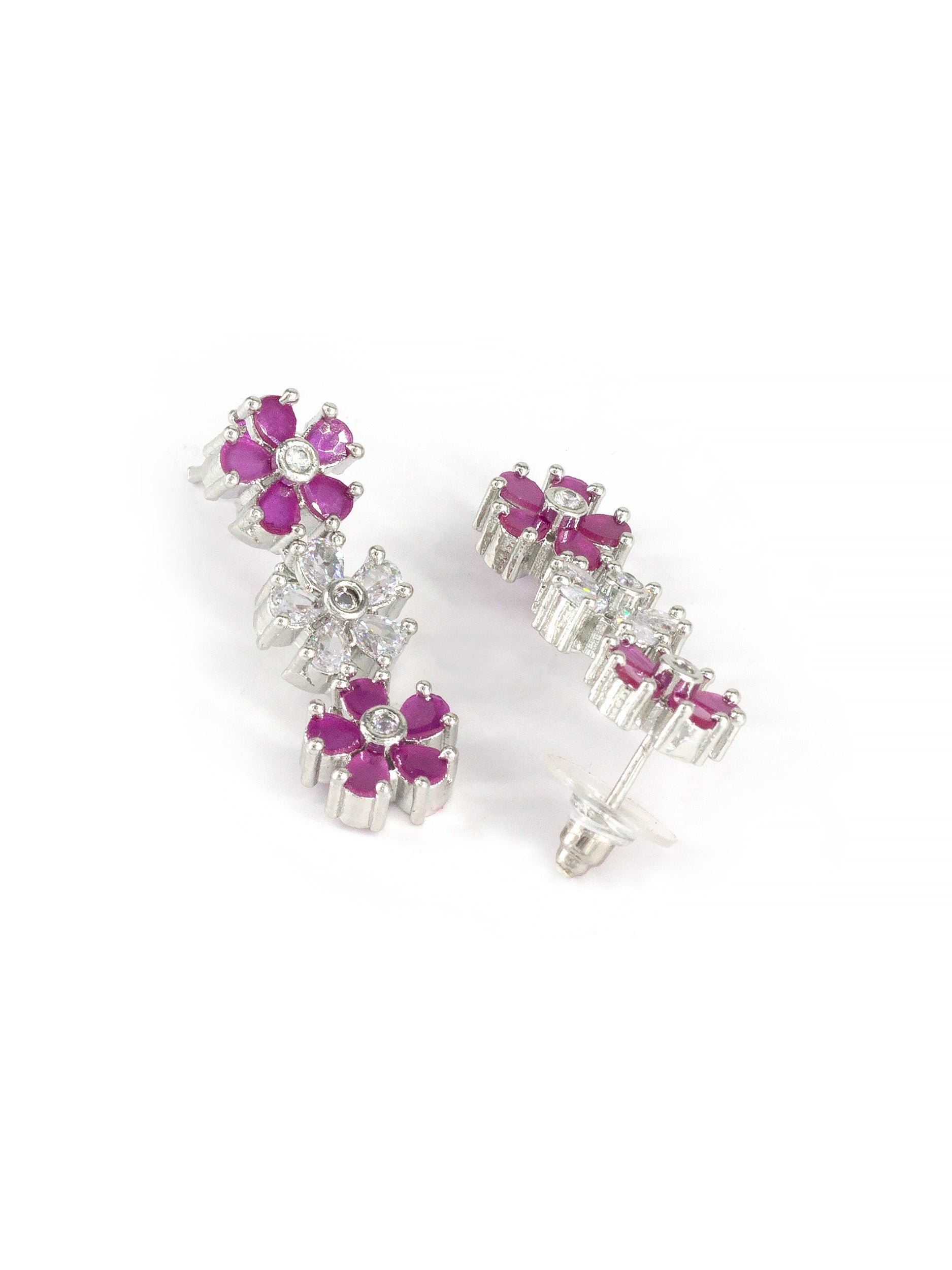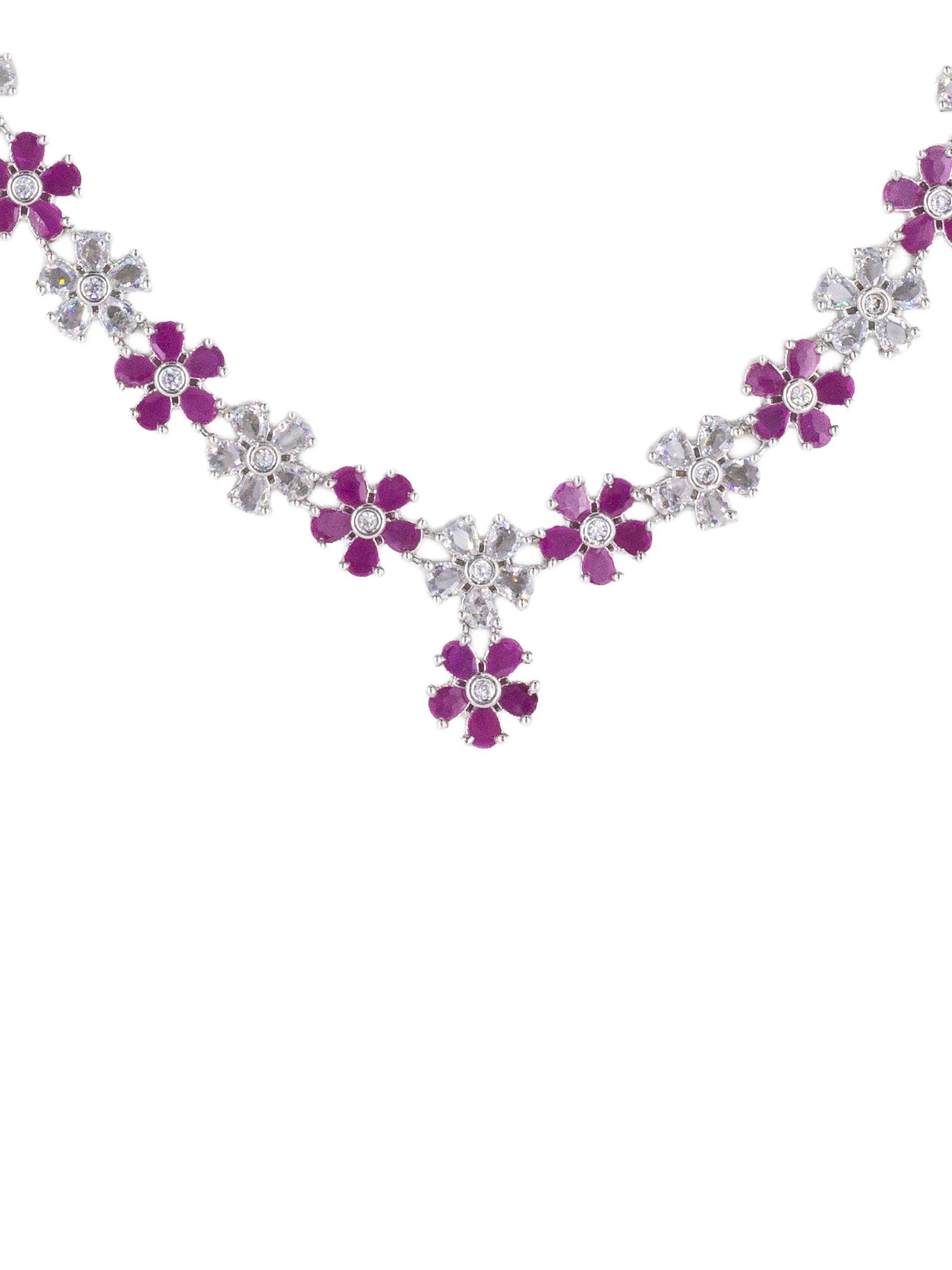 Rhodium Plated Ruby American Diamond Studded Floral Jewellery Set