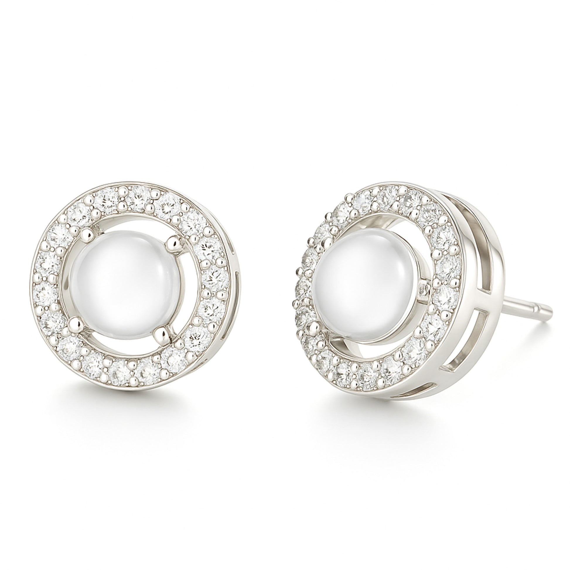 Rhodium Plated White AD & Pearl Stud Earrings for Women