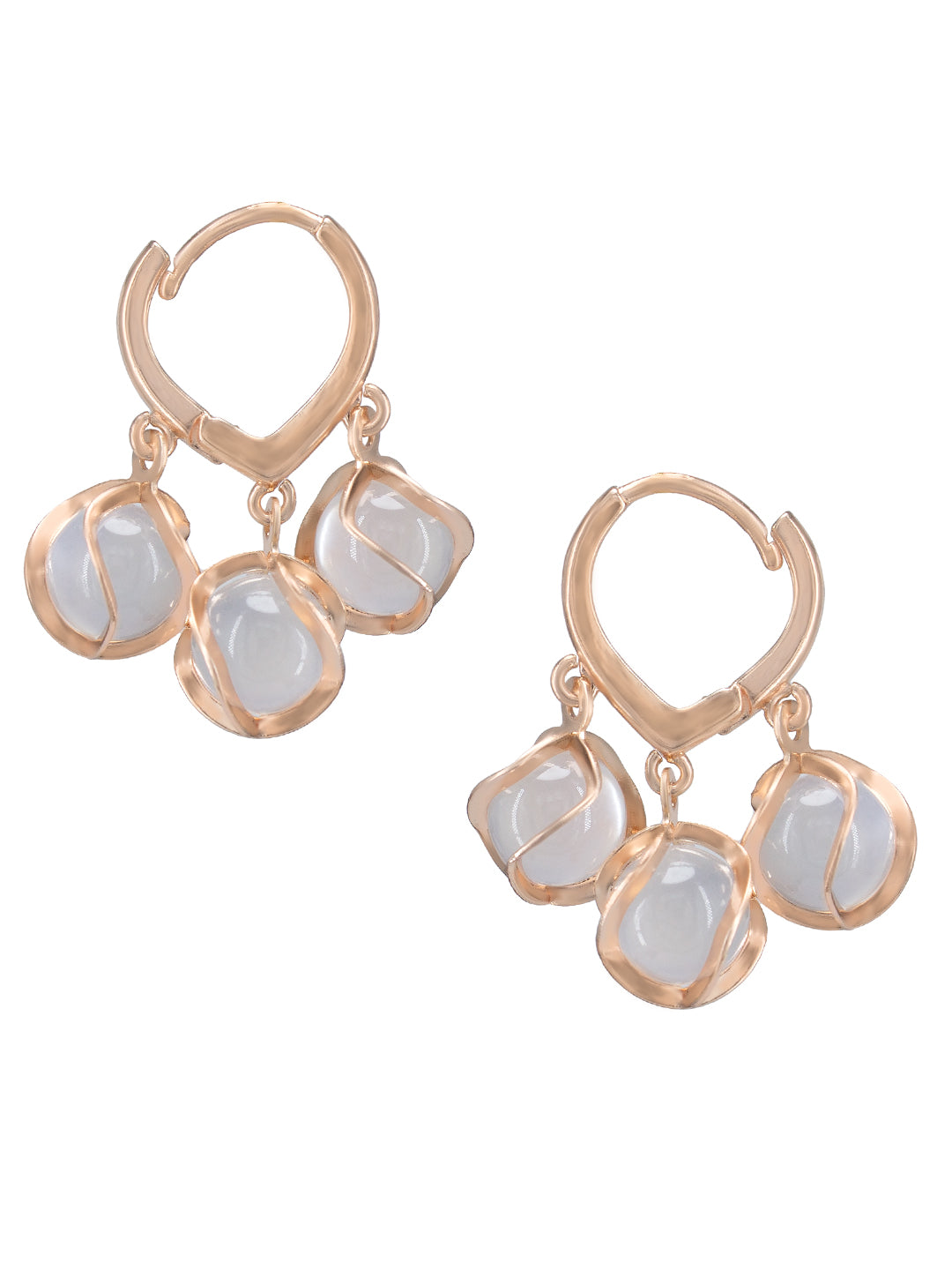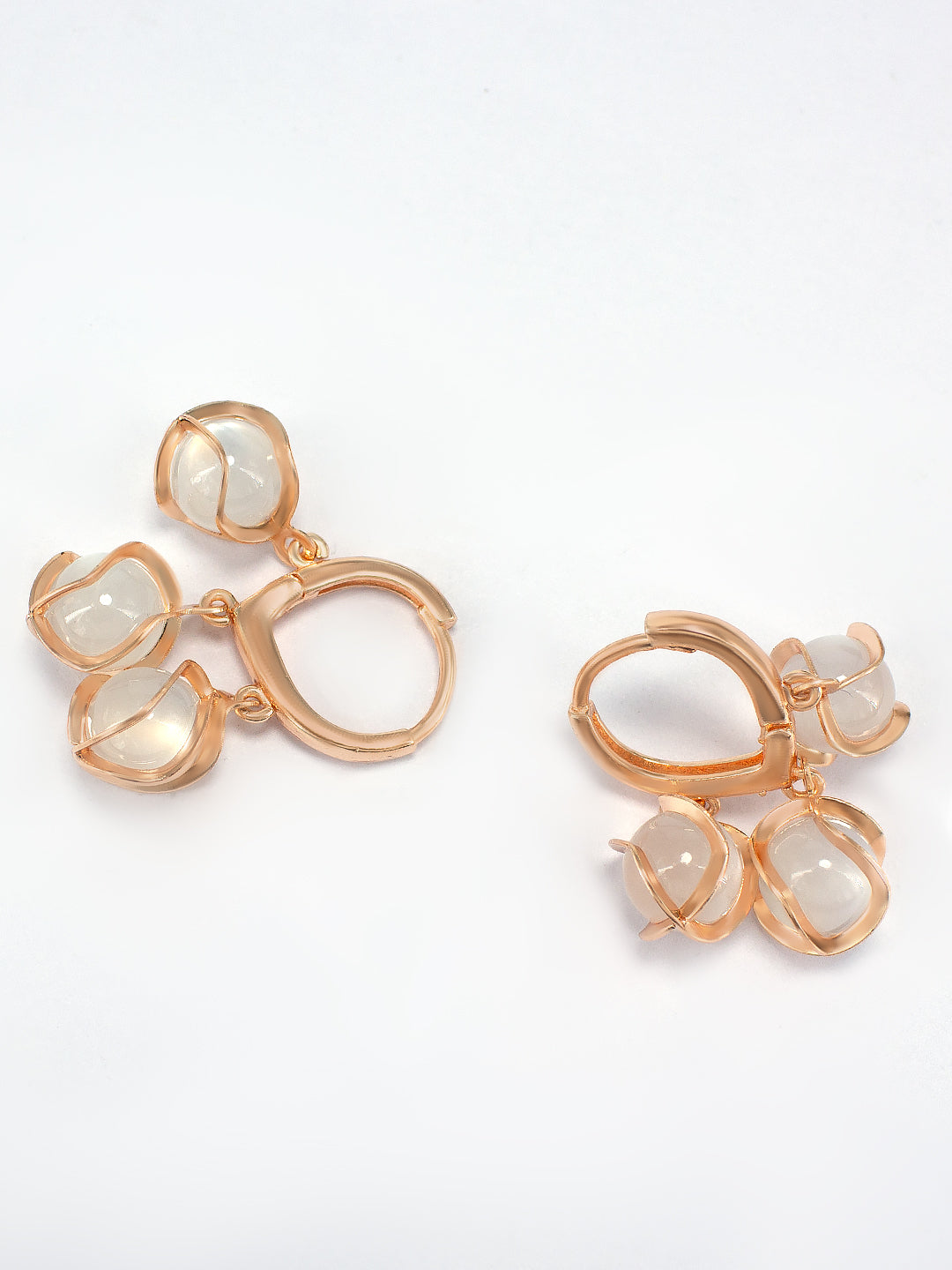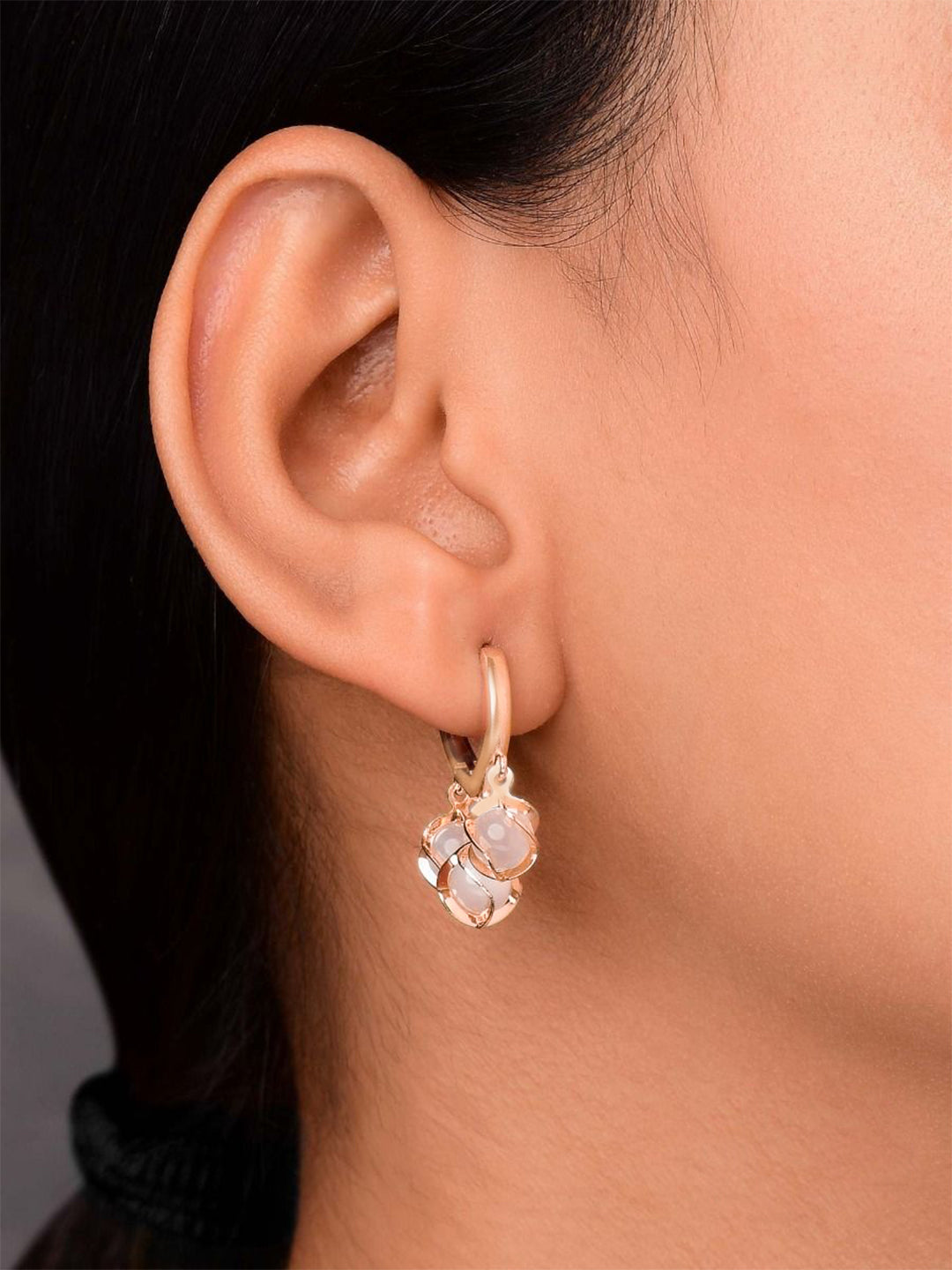Rose gold-toned contemporary hoop earrings, rose gold-plated, has artificial stones