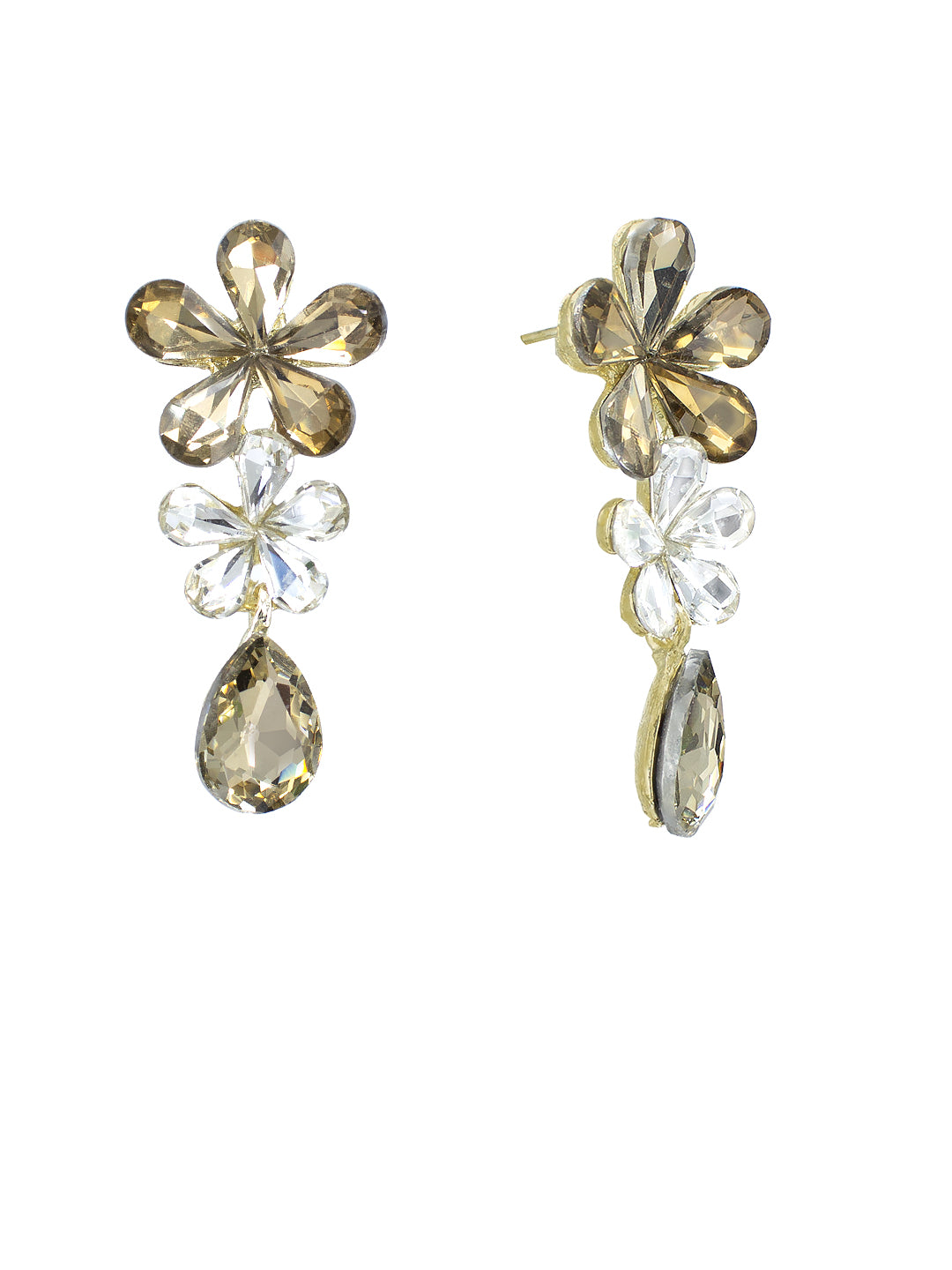 Rose gold-toned, brown and white floral drop earrings, rose gold-plated, has crystals studded details