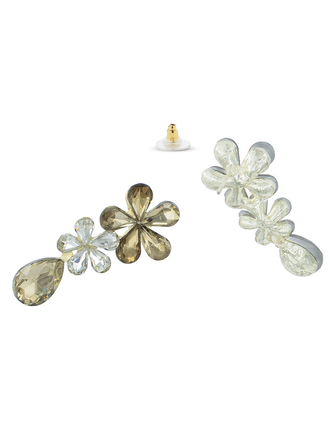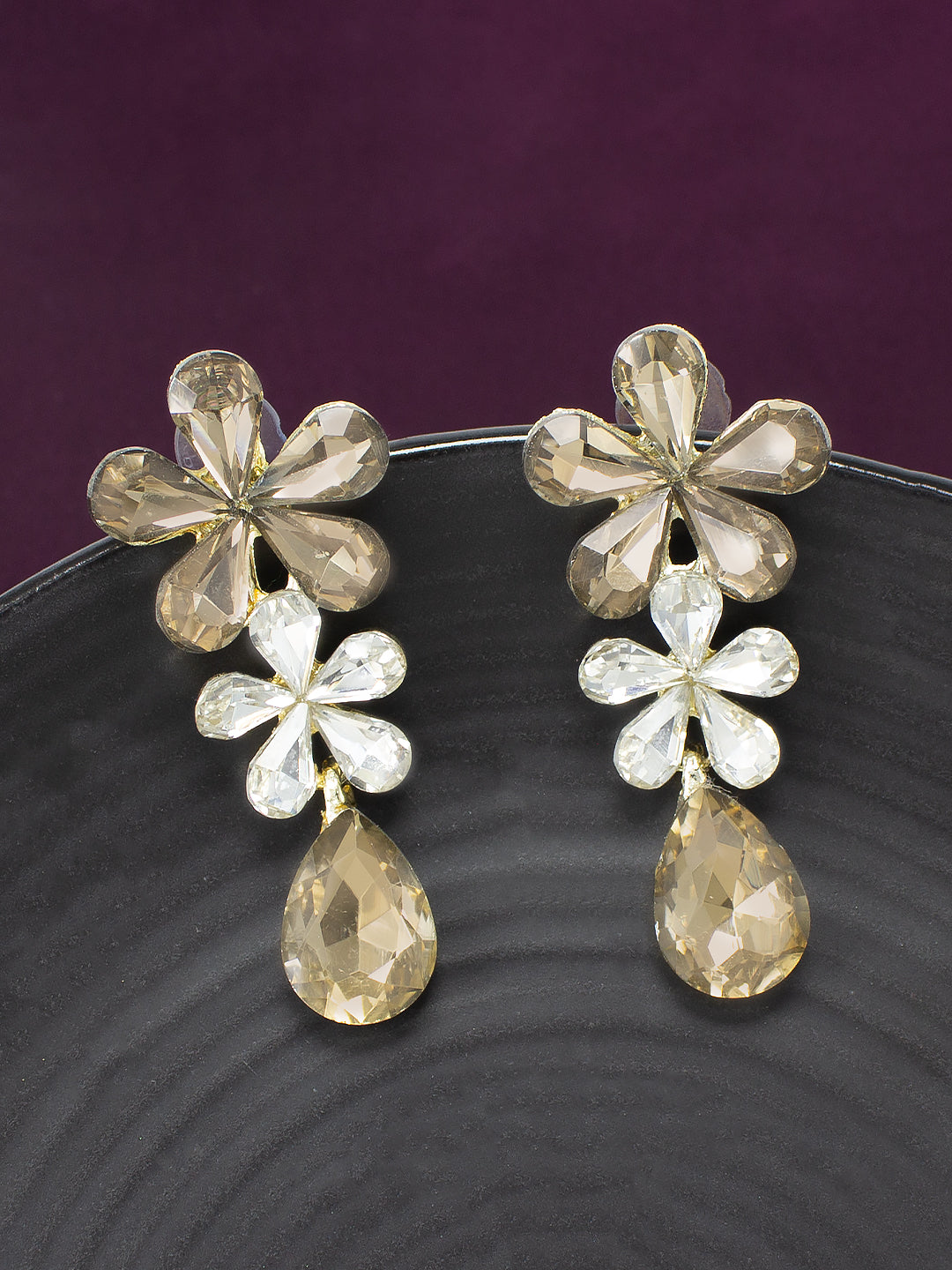 Rose Gold-Plated Crystals Studded Floral Drop Earrings