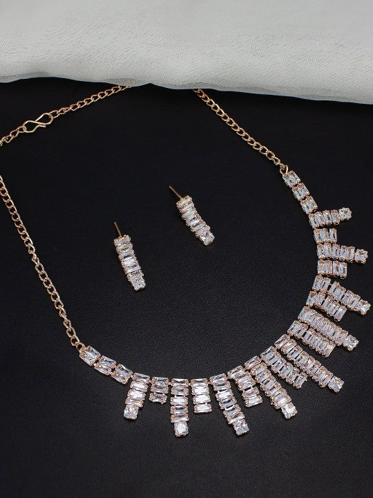 Rose Gold Plated Cubic Zirconia Studded Jewellery Set