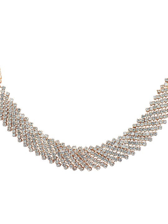 Rose Gold-plated choker necklace, has white CZ-studded details