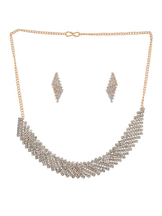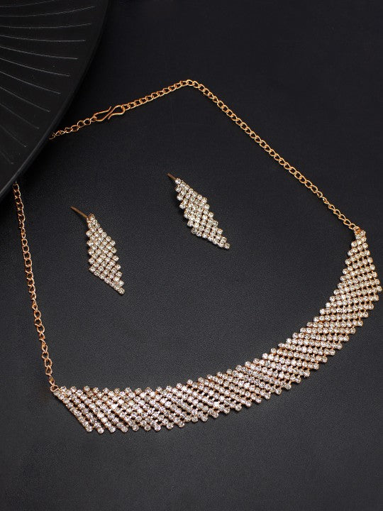 Rose Gold-Plated Cubic Zirconia-Studded Jewellery Set
