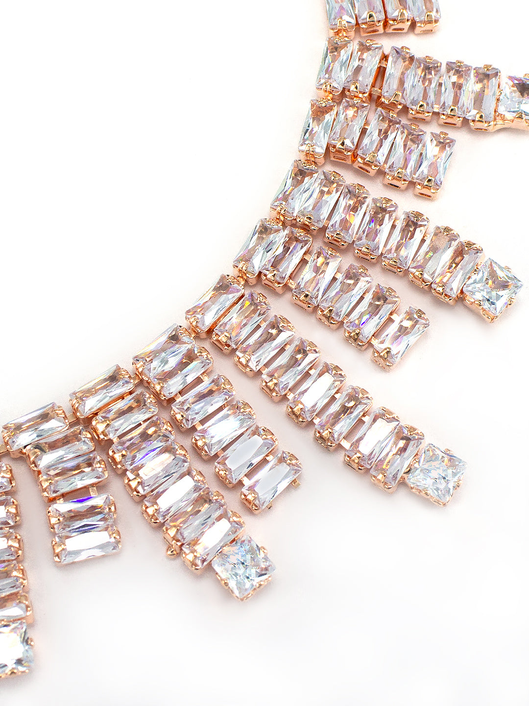 Rose Gold-plated choker necklace, has white CZ-studded details