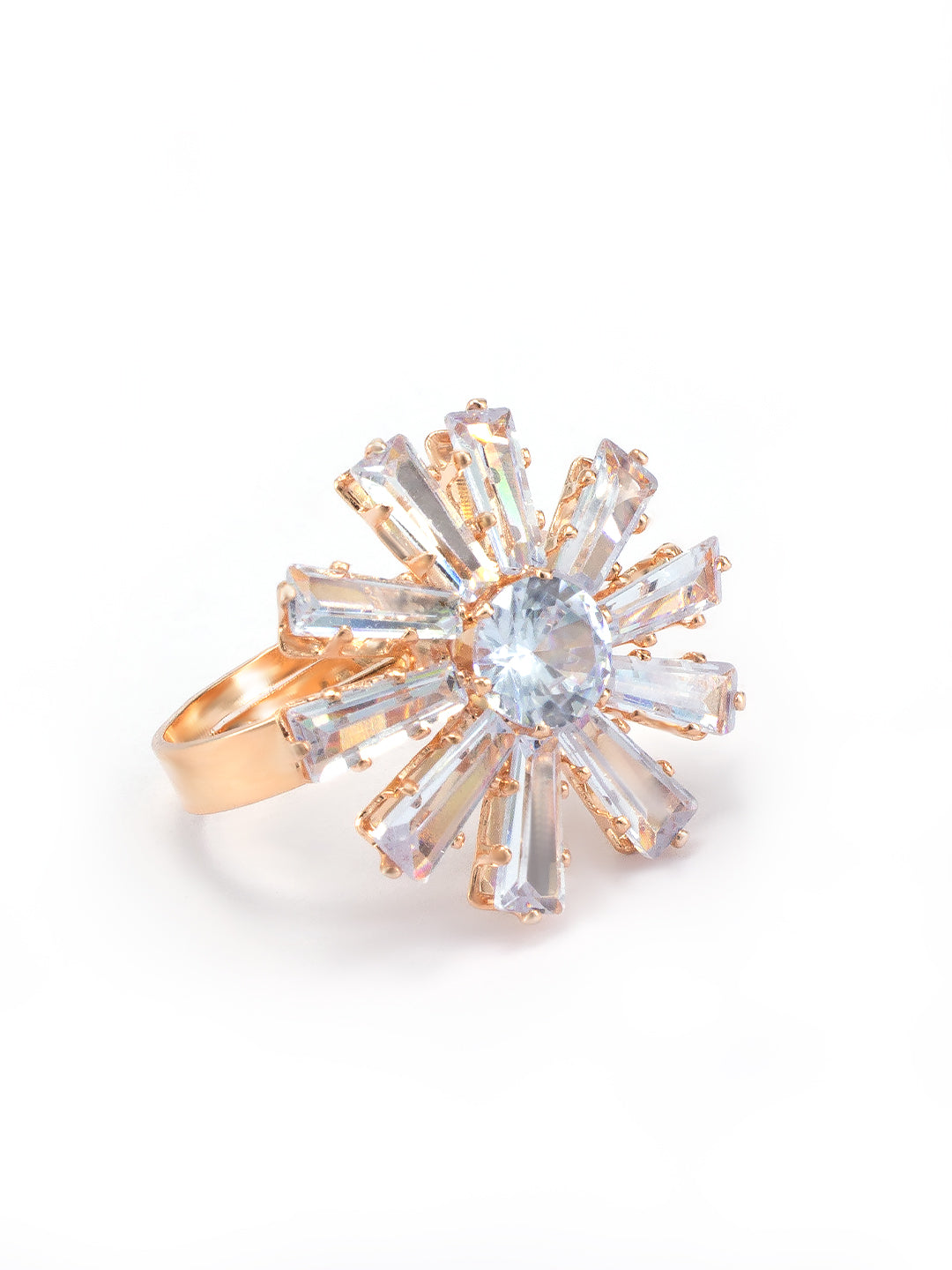 Pack of 5 AD-Studded Solitaire Adjustable Finger Ring