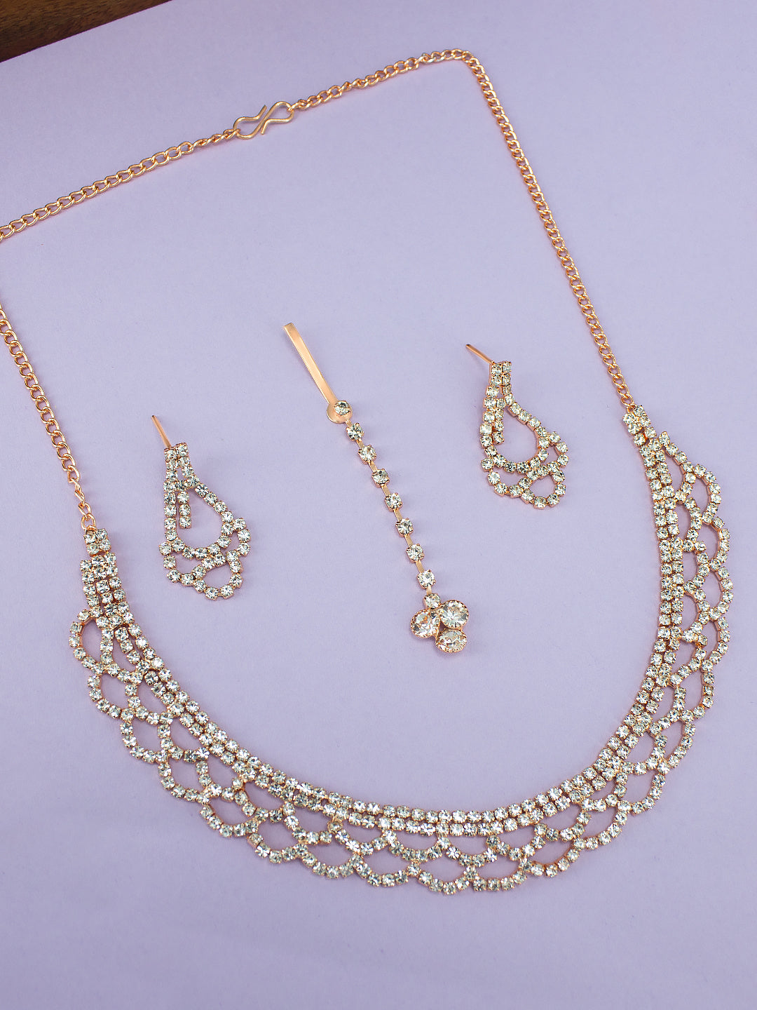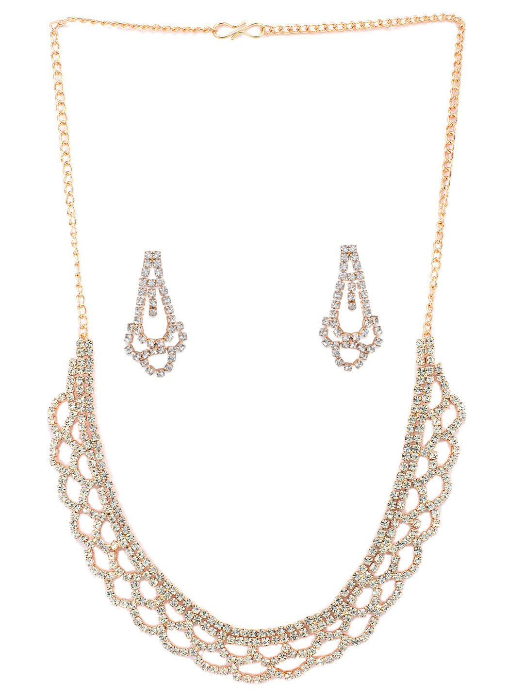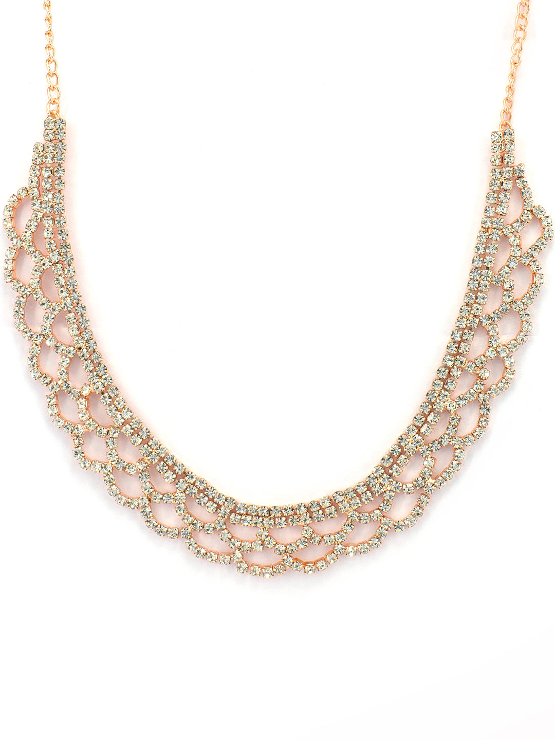 Rose Gold-plated choker necklace, has white stone Studded Details
