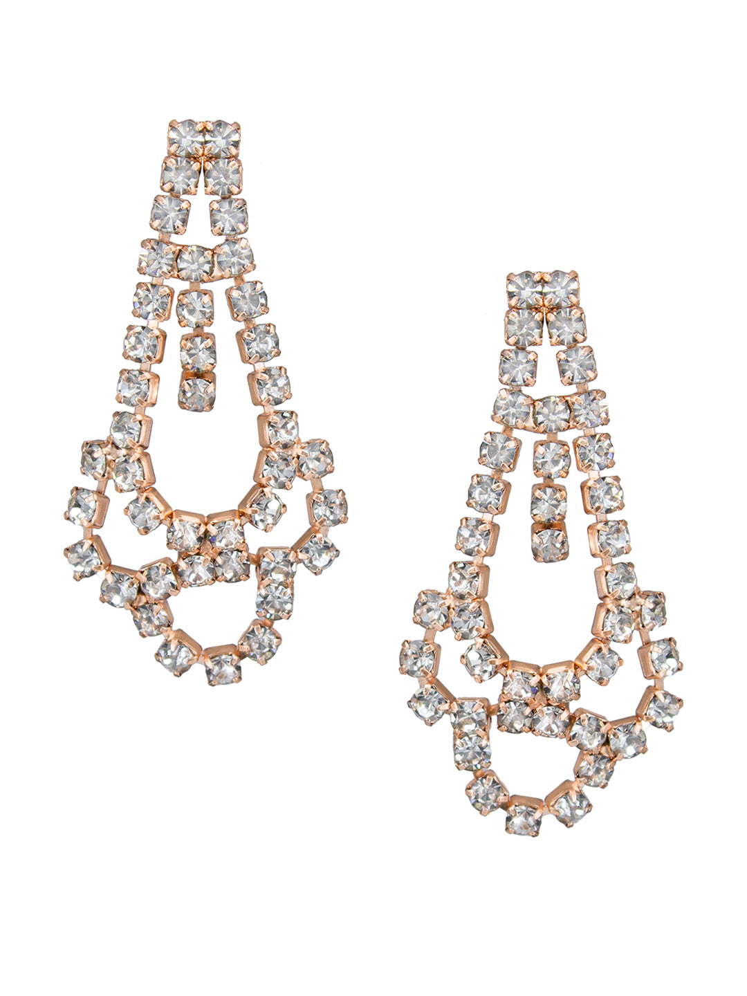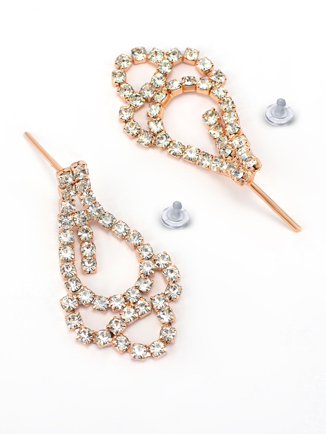 A pair of matching drop earrings, each secured with a post-and-back closure