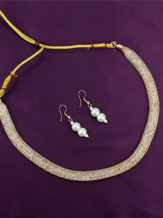 Rose Gold-Plated CZ Studded Mesh Jewellery Set