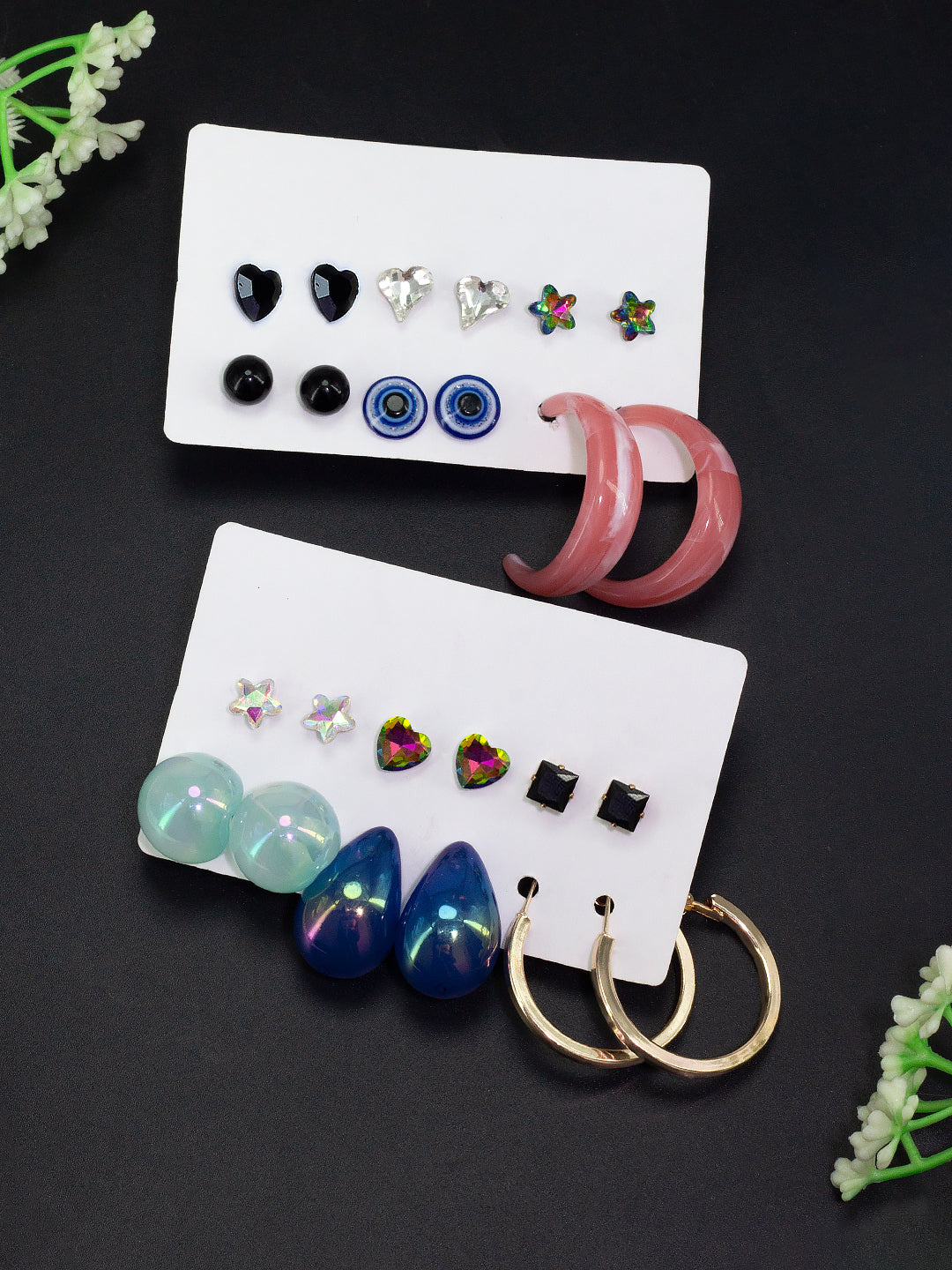 Pack of 12 Multi Colour Drop, Hoop & Studs Earrings