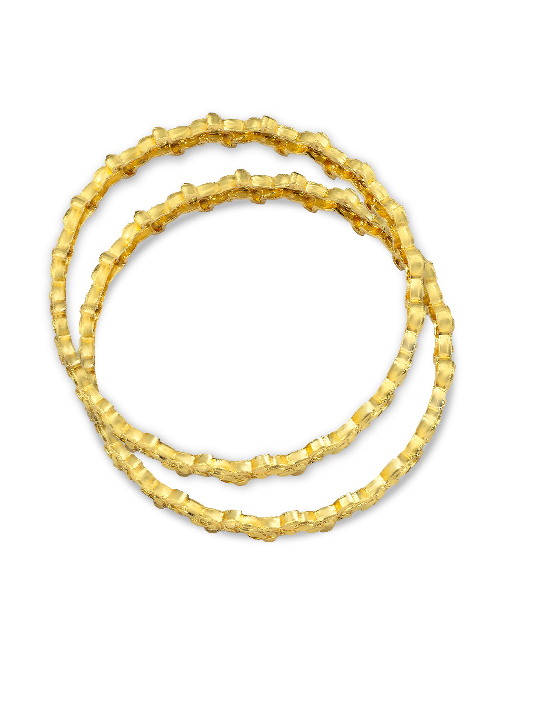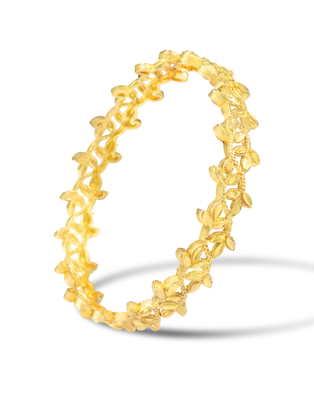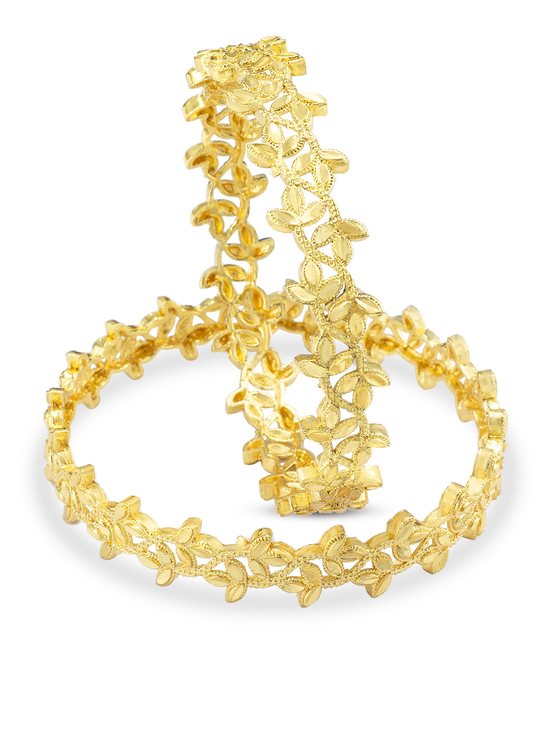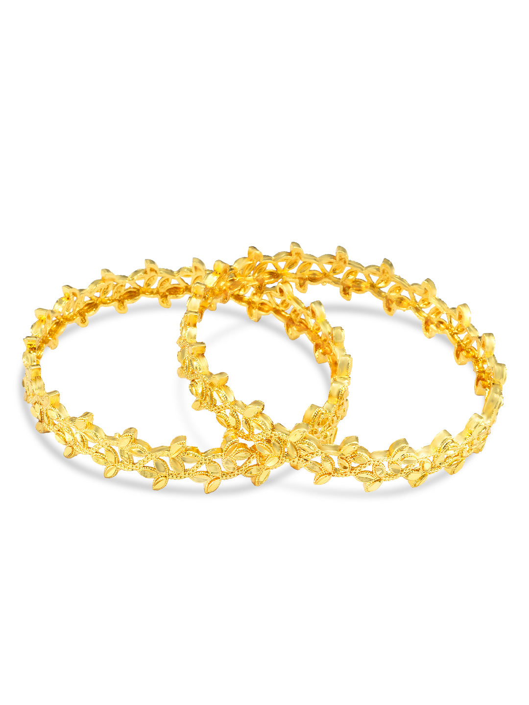 Elevate your wrist game with this set of 2 beautiful gold-plated leaf shaped bangles. These bangles are not only stylish but also durable, making them the perfect accessory for any occasion. Add a touch of elegance and sophistication to your outfit with these stunning bangles.