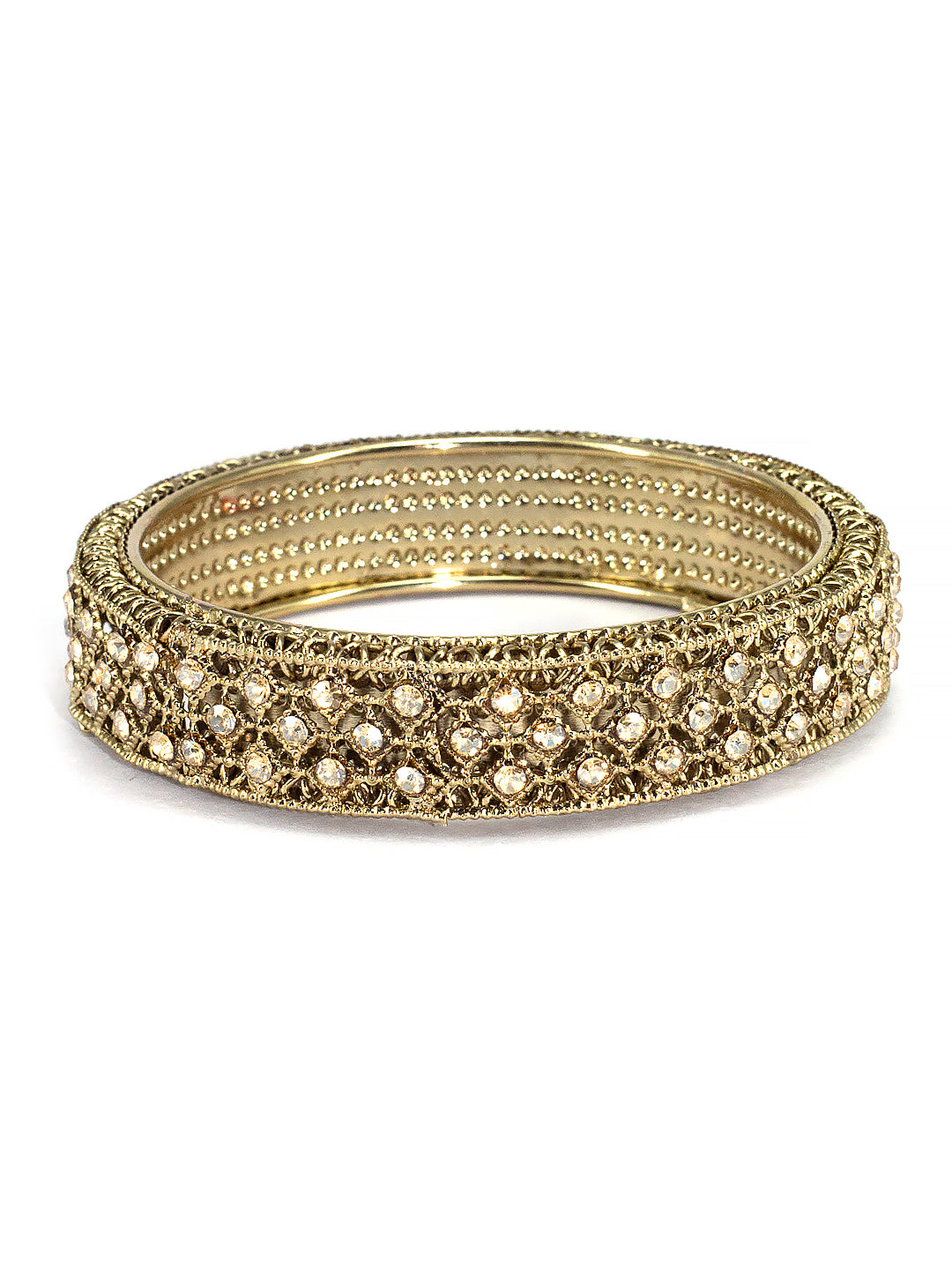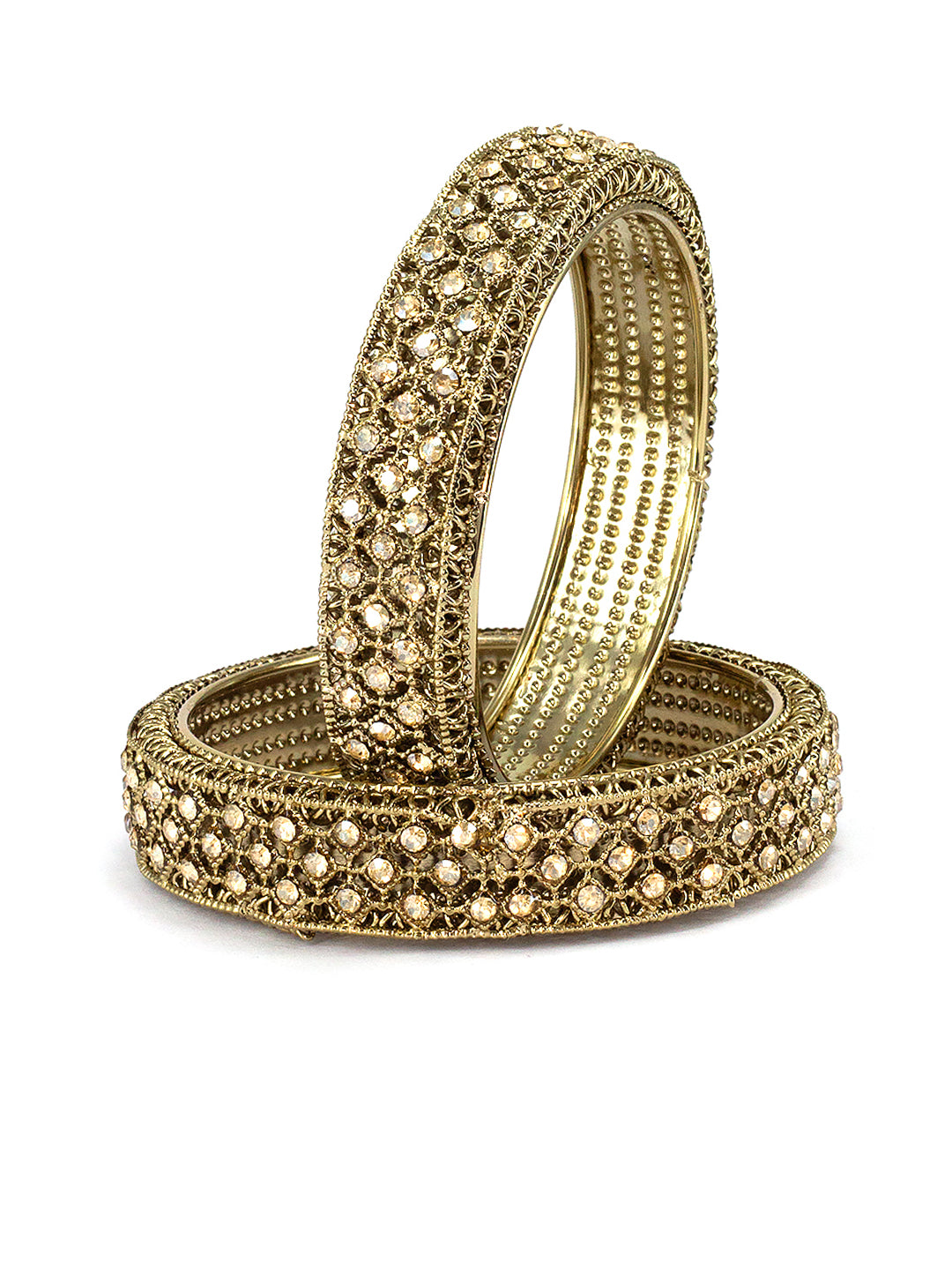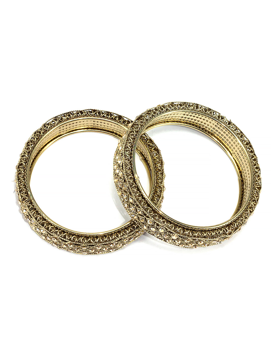 Add a touch of elegance to your outfit with these Set Of 2 Gold-Plated Stone-Studded Antique Bangles. Made with high-quality materials and stunning design, these bangles will make you stand out from the crowd. Perfect for any occasion, they are a must-have for any jewelry collection.