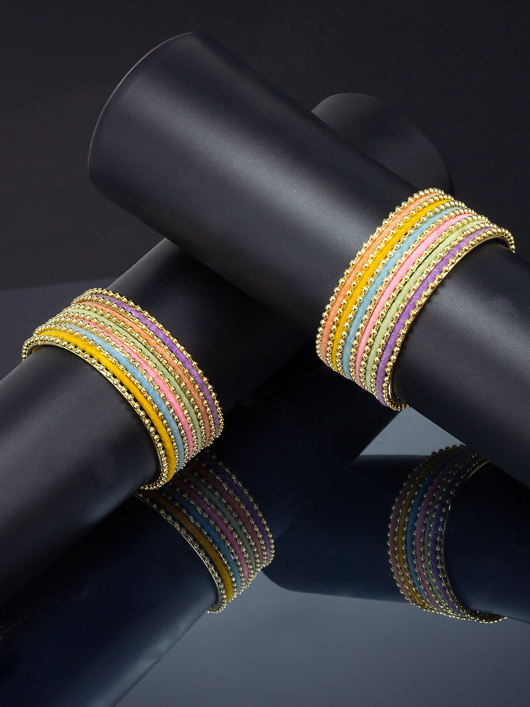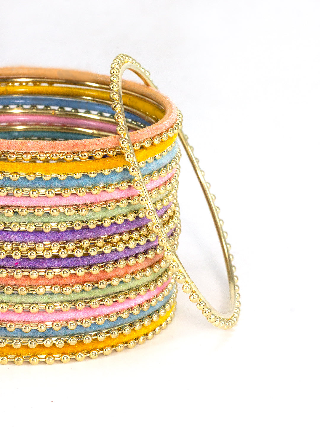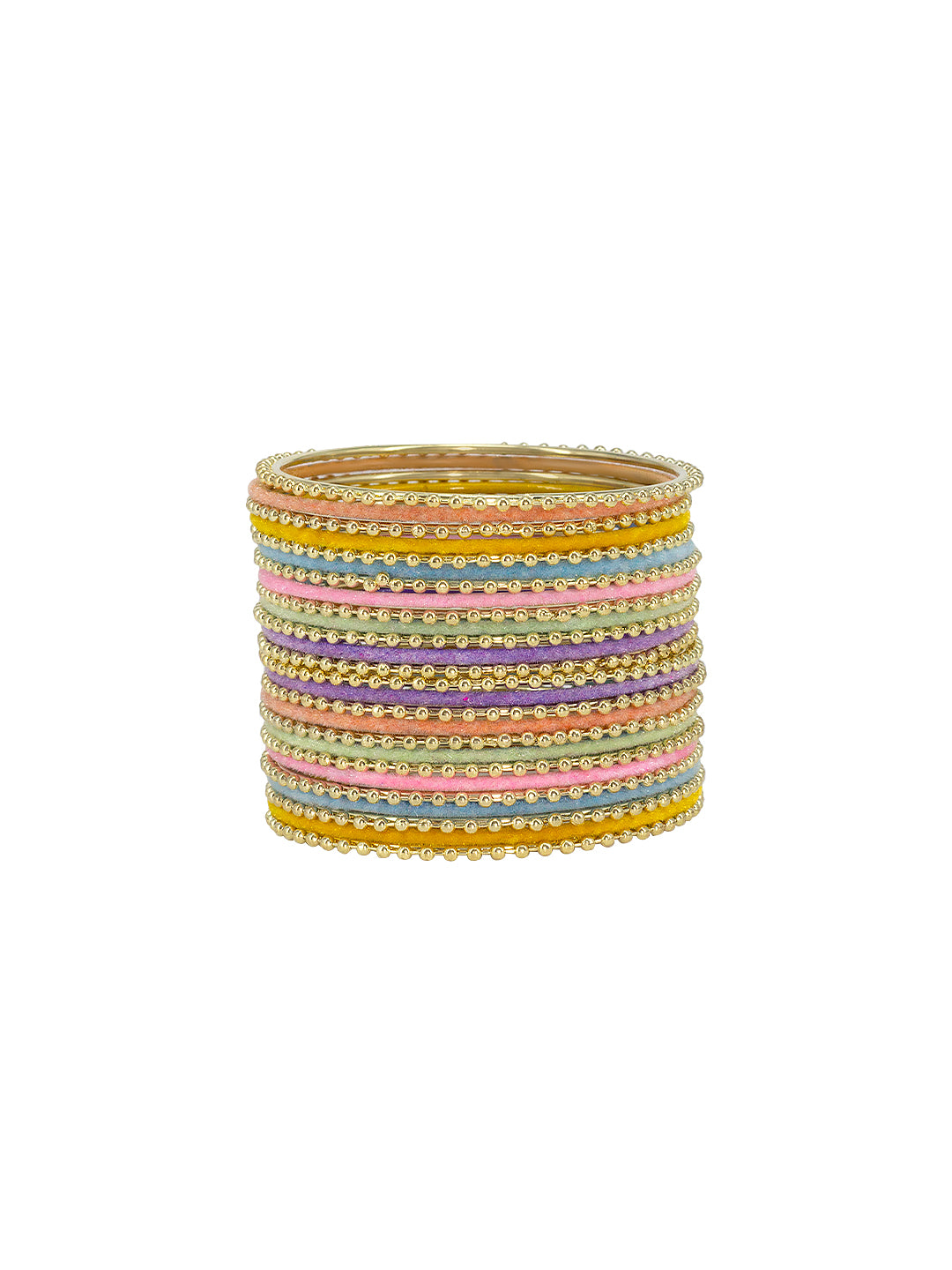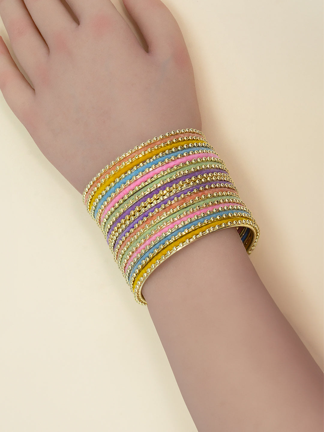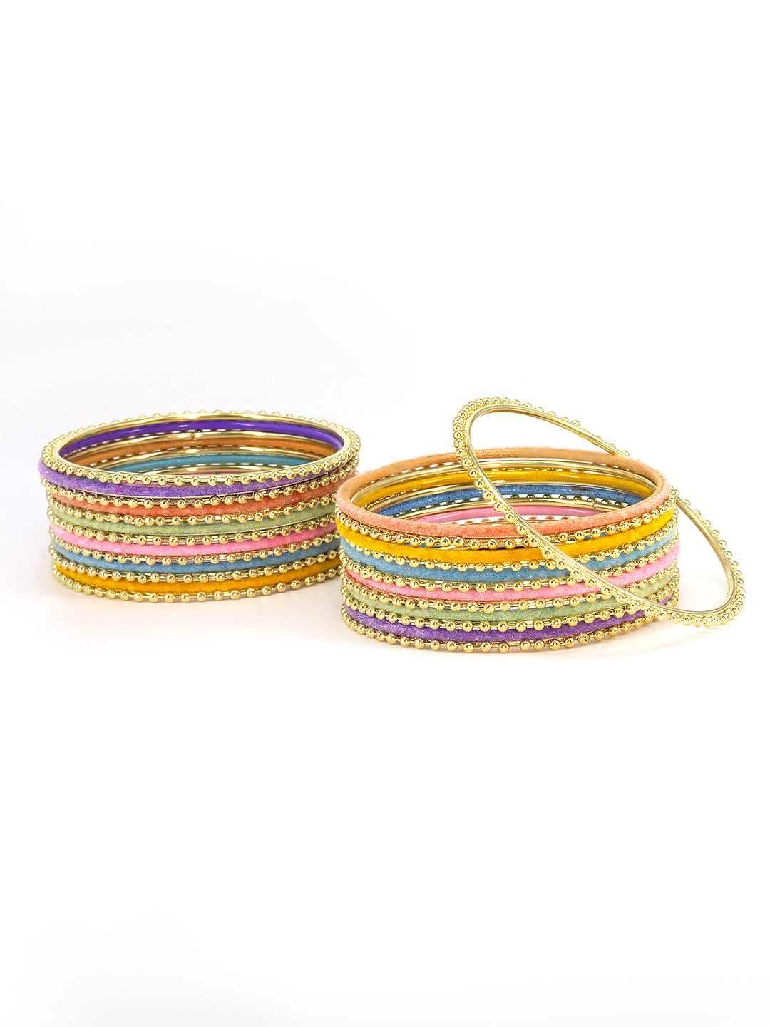 Set of 26 Gold-Plated bangles, each has textured details, secured with slip-on closure