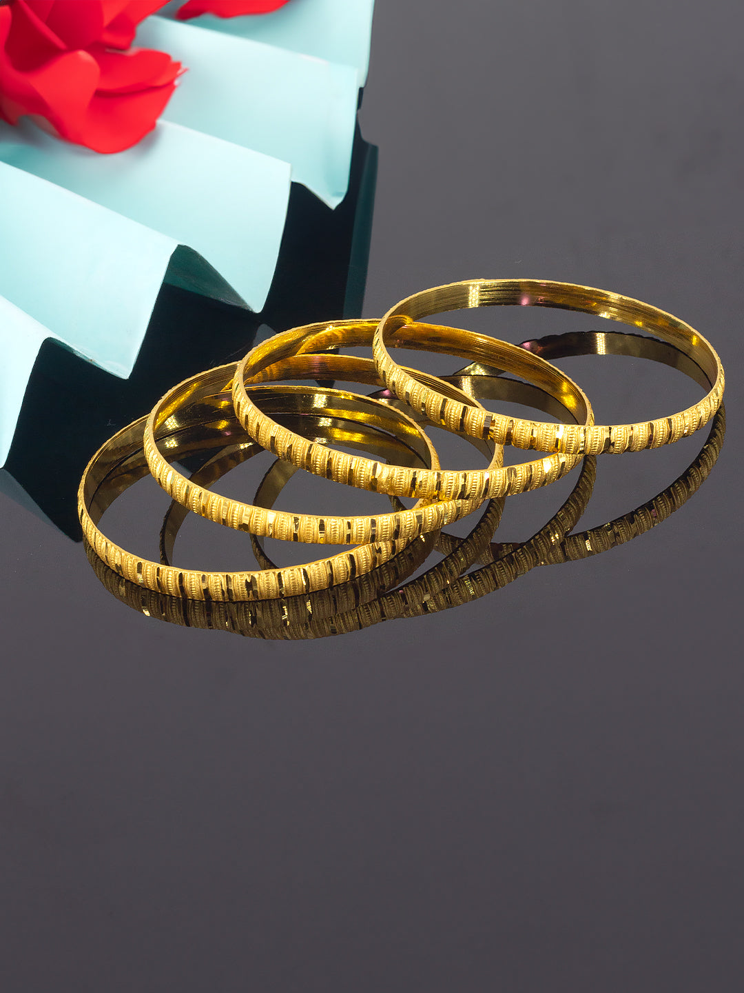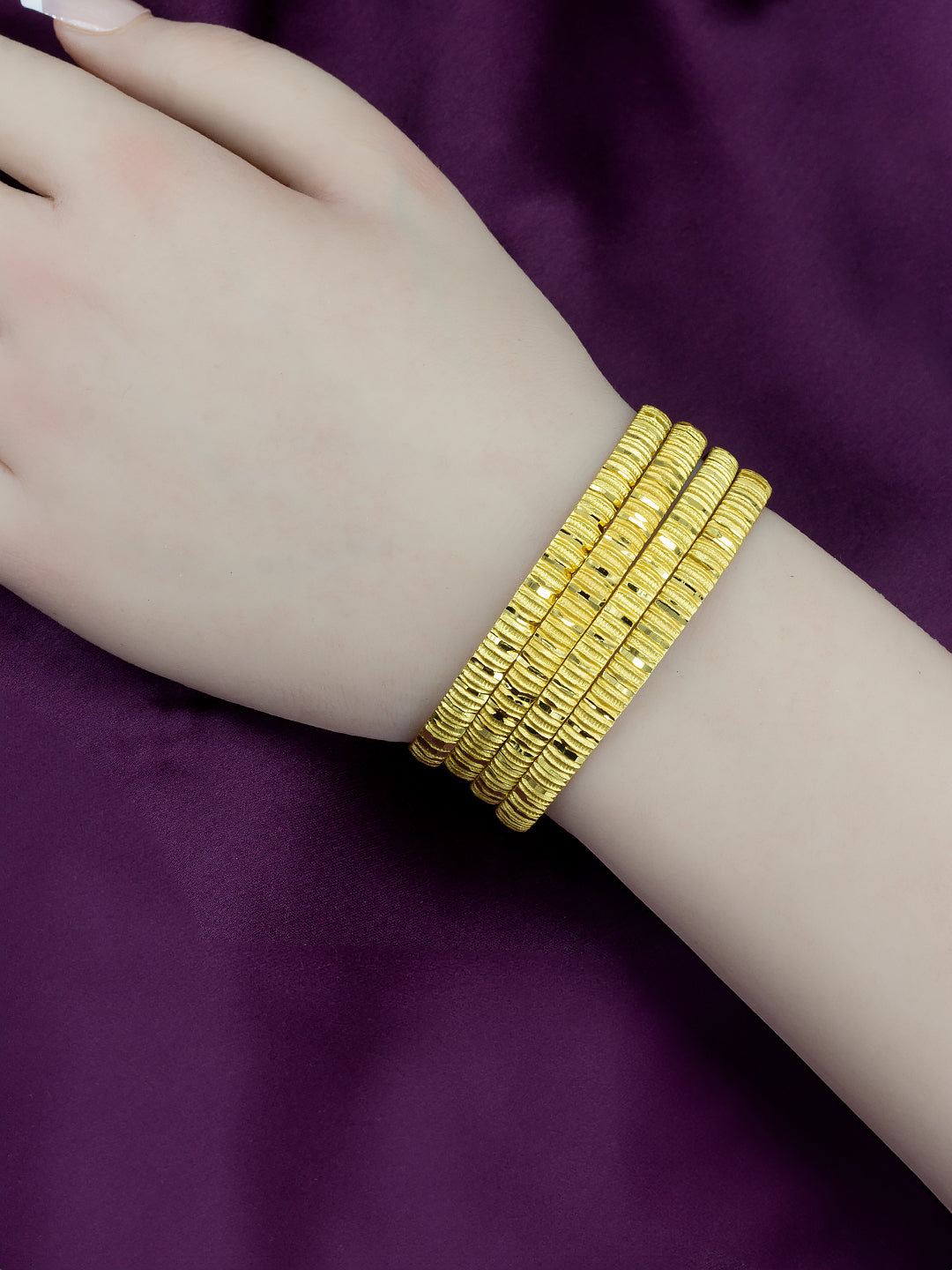 This bangle set consist of 4 gold plated bangles and secured with slip on closure.