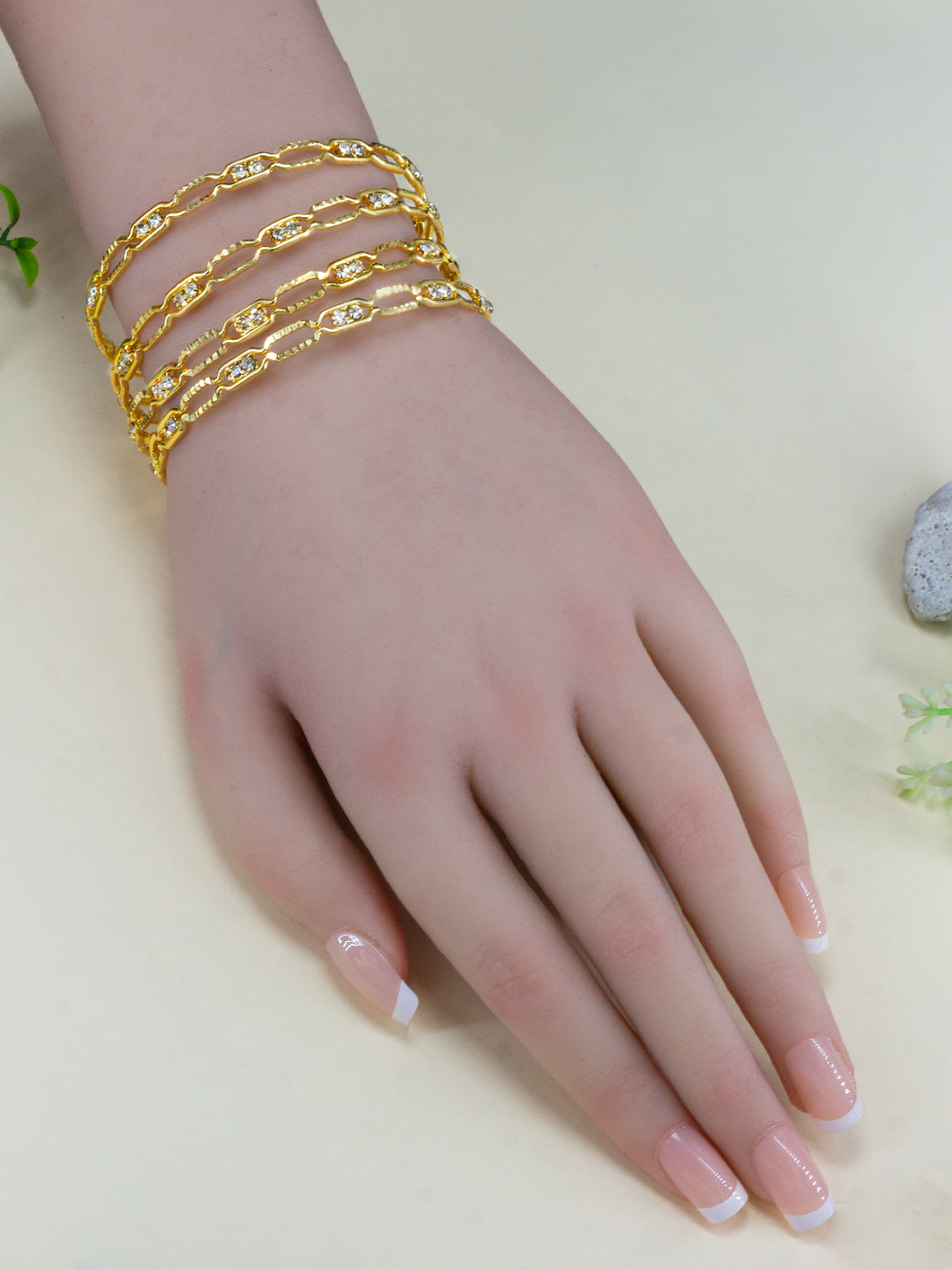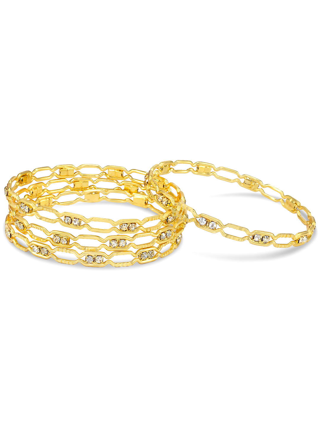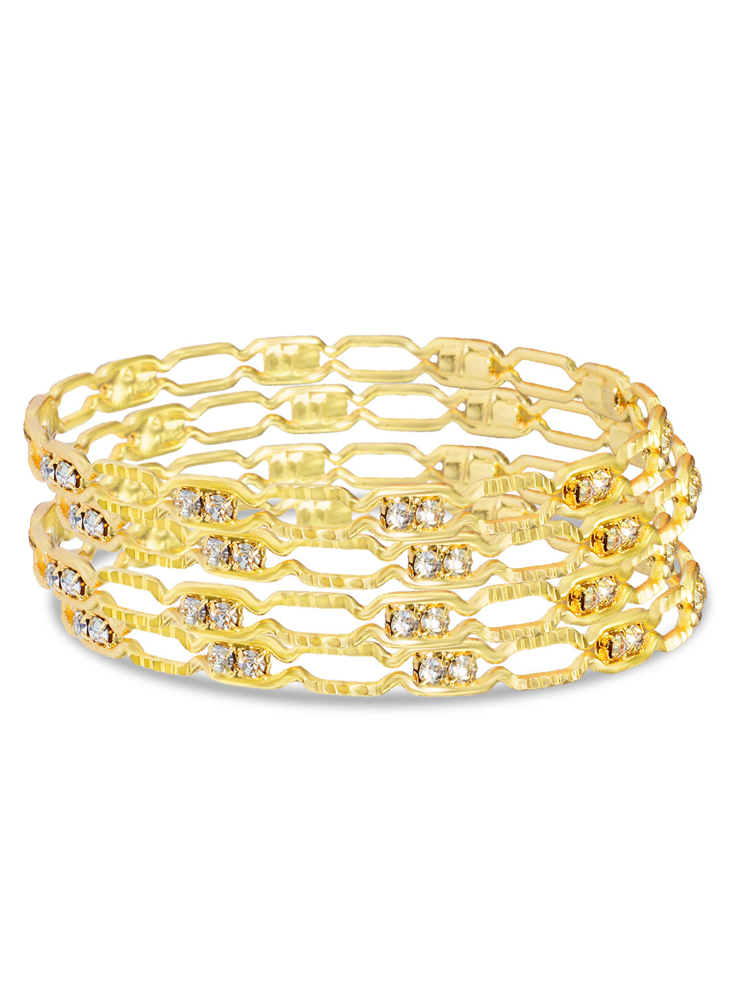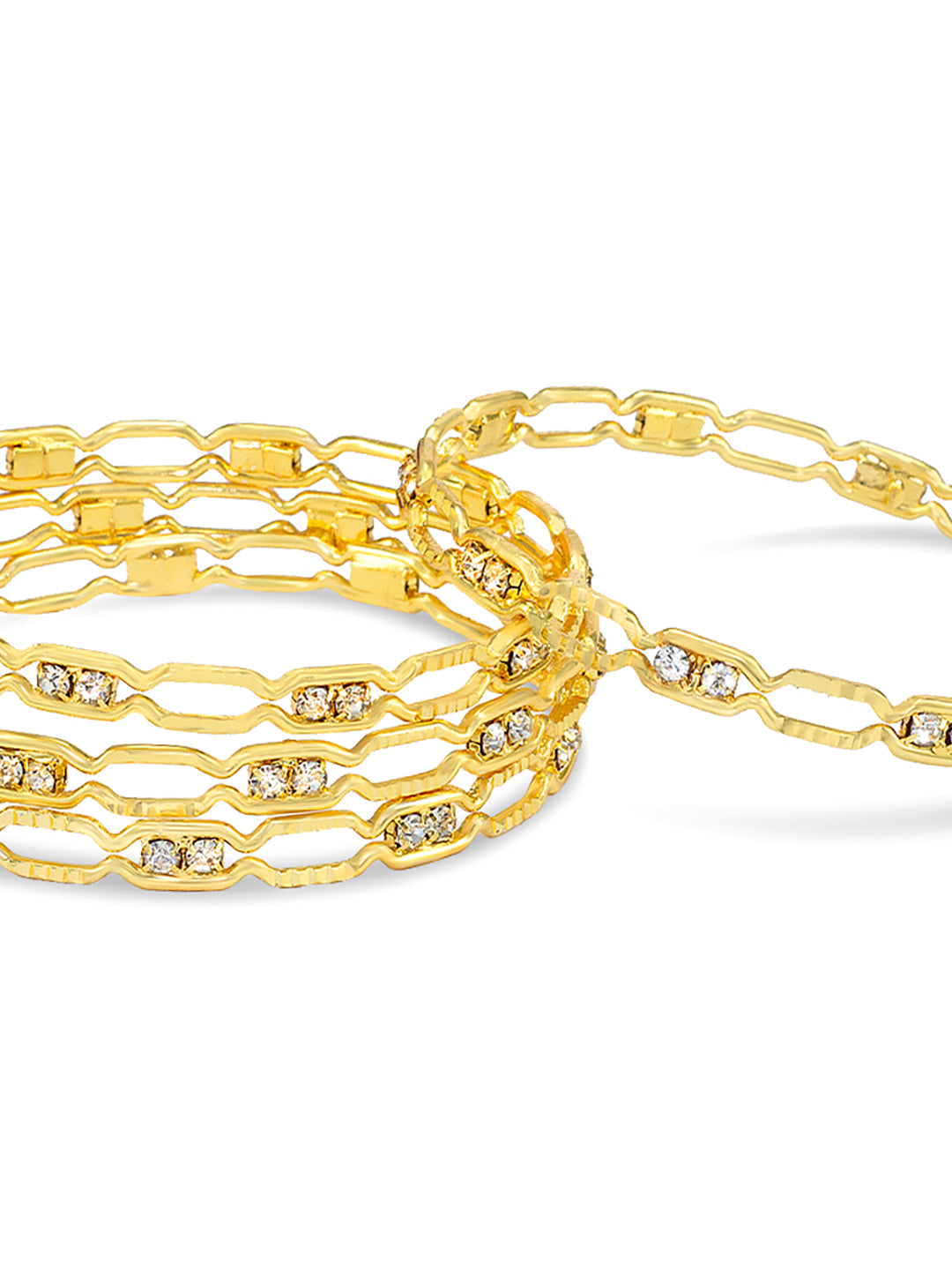 Set Of 4 Gold-Plated Rhinestone Studded Bangles