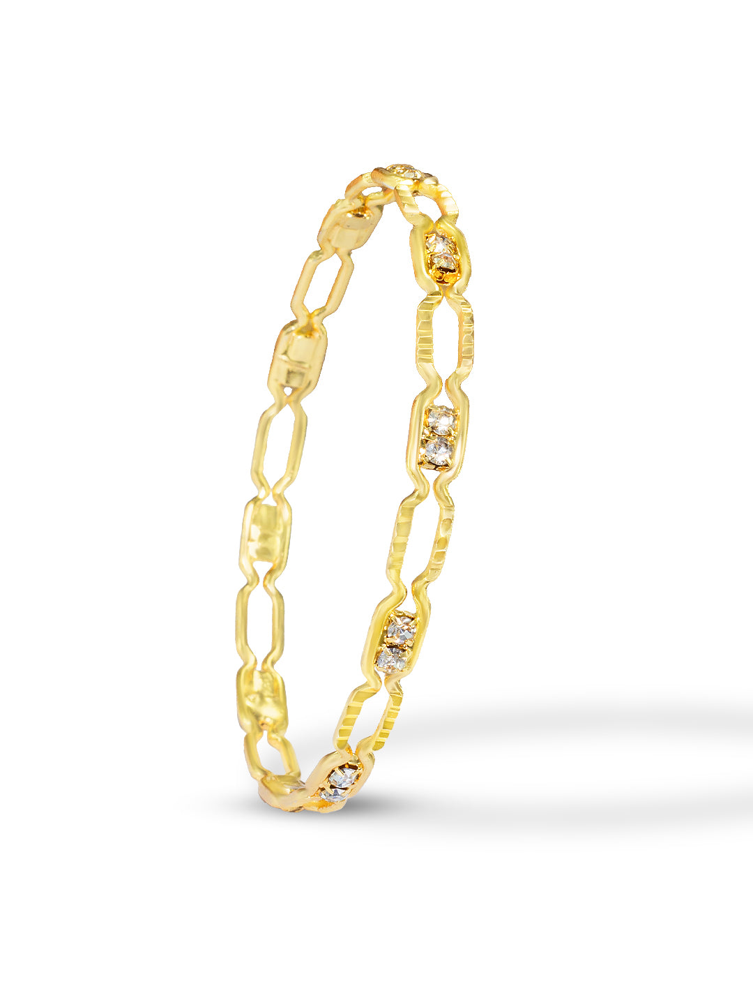 Enhance your outfit with this set of 4 gold-plated bangles, each adorned with sparkling rhinestones. Perfect for adding a touch of elegance and glamour to any look.