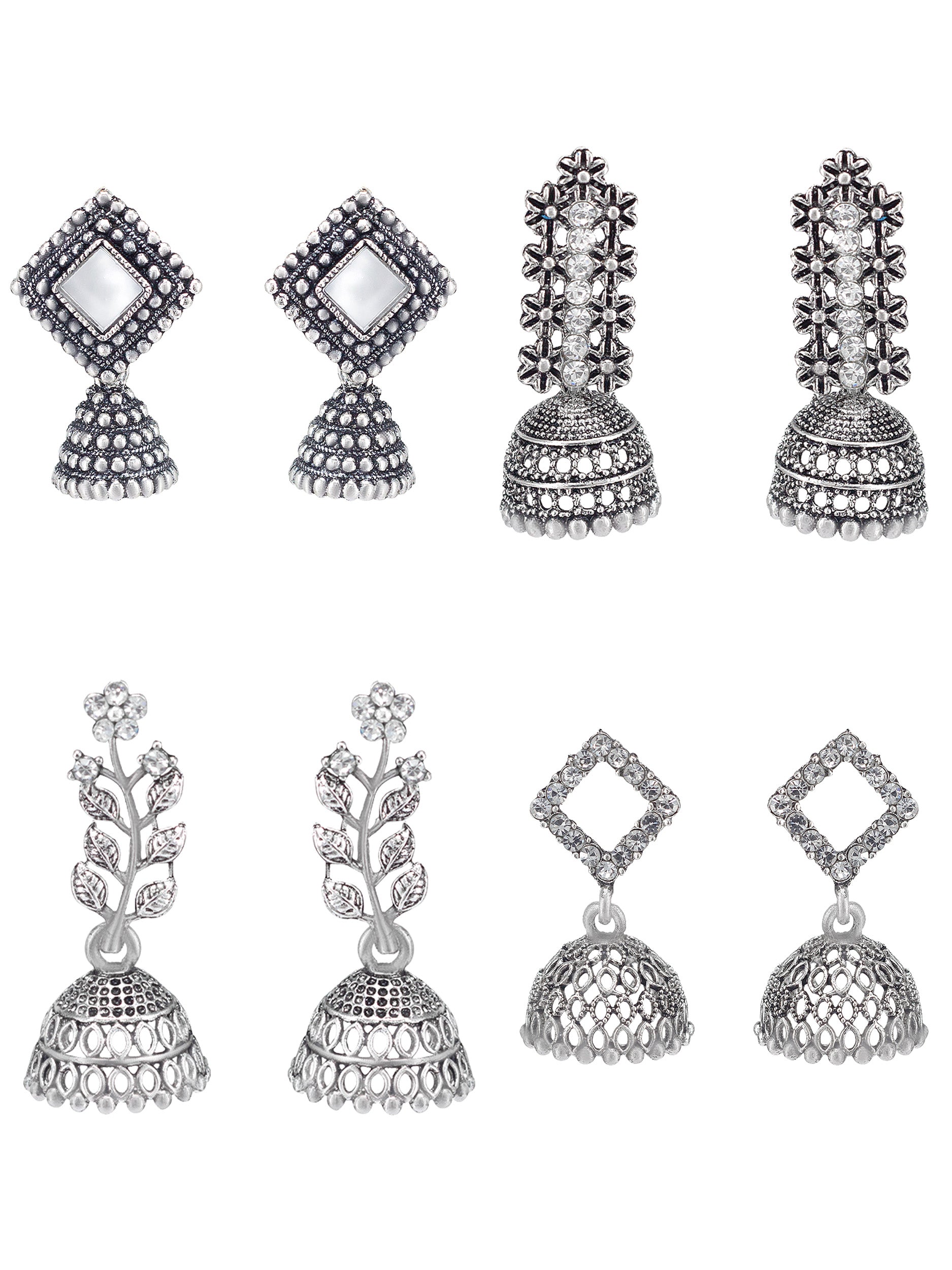 Set of 4 Silver Oxidised Jhumka Earrings for Women
