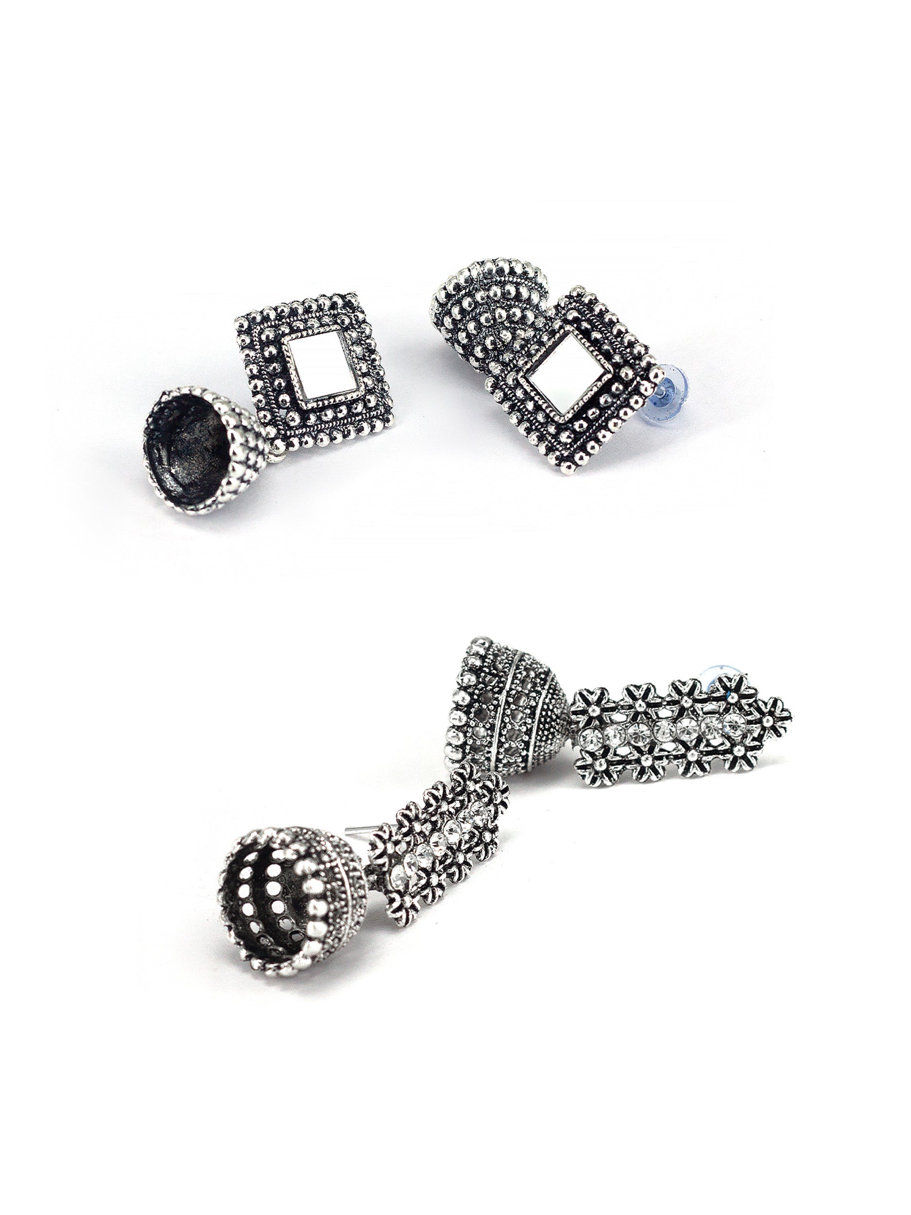 Set of 4 Silver Oxidised Earrings for Women secured with Post & Back Closure.