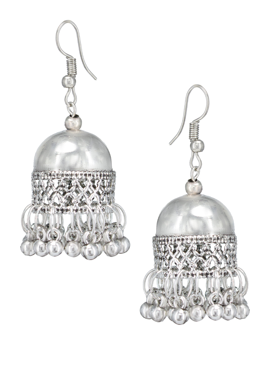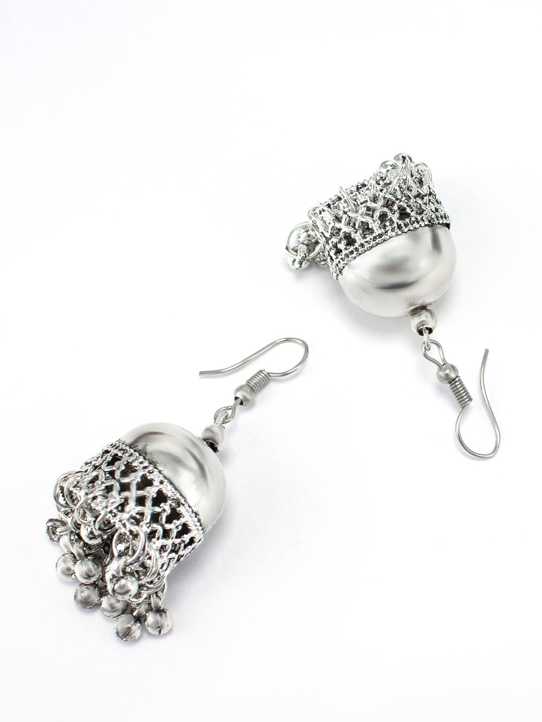 Silver Oxidised Radha Krishna Jhumka Earrings