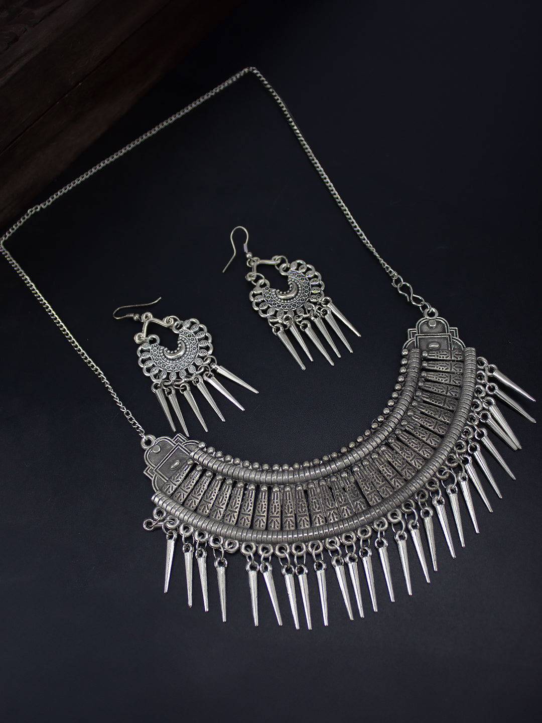 Silver Oxidised Beaded Drop Jewellery Set