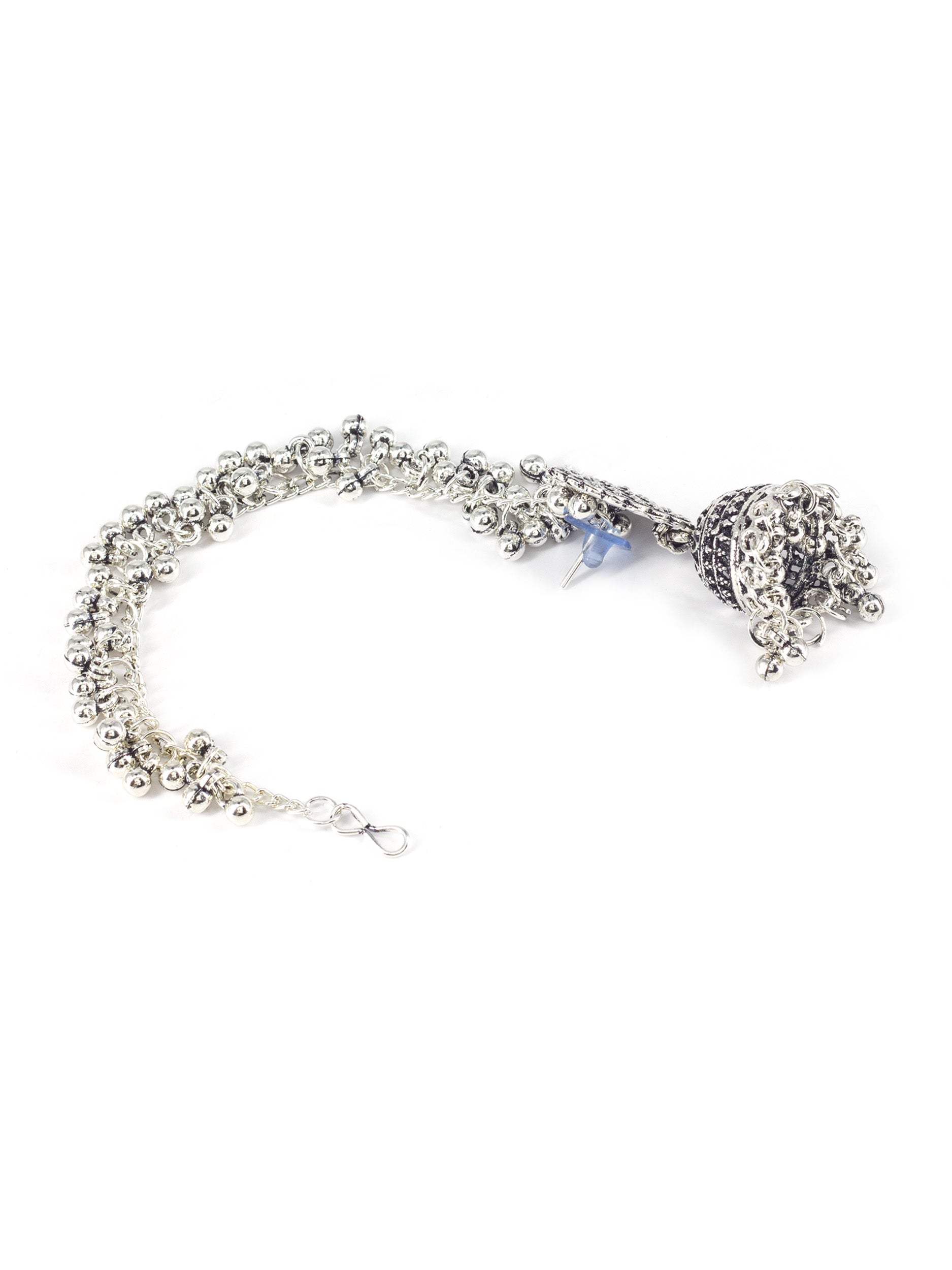 Silver Oxidised Circular Earrings with Ear Chain for Women