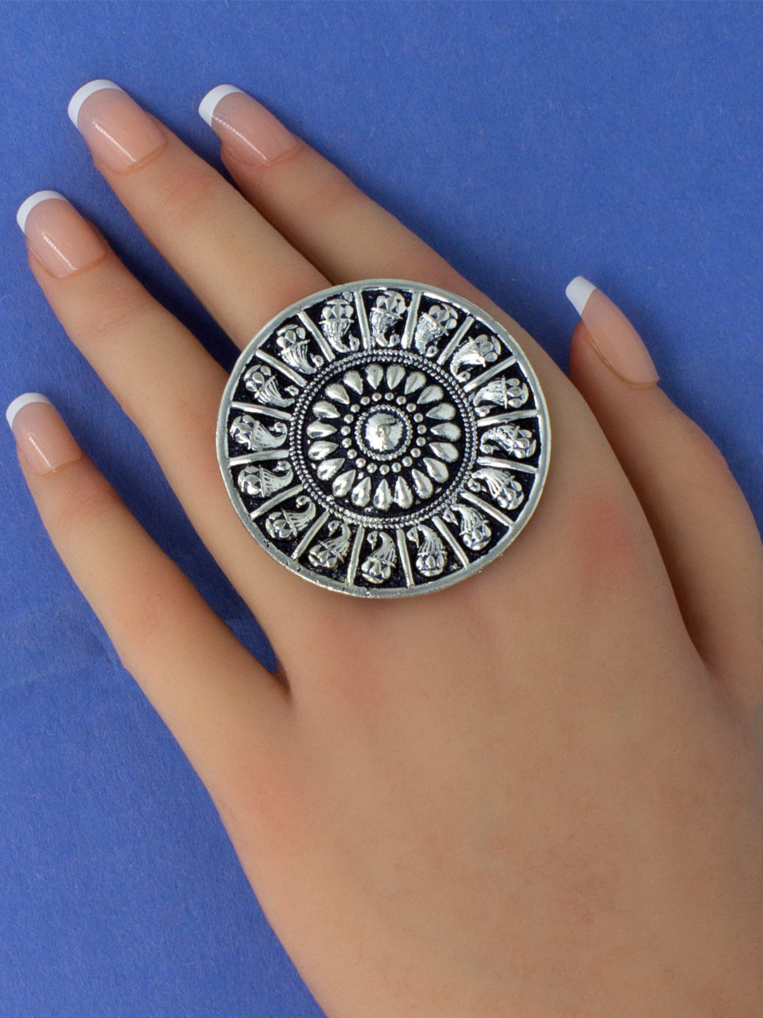Floral Solitaire AD-Studded Adjustable Ring