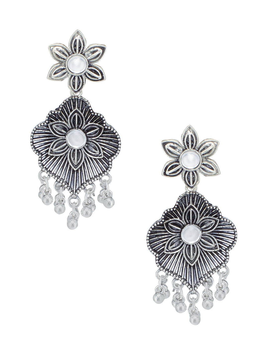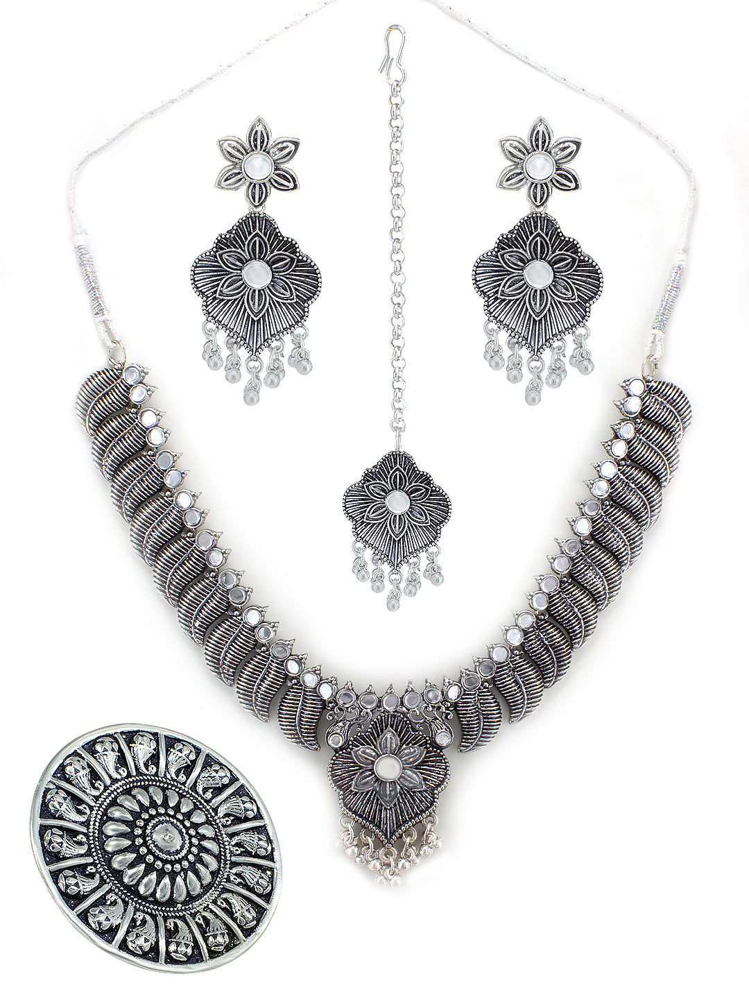 Silver Oxidised Floral Jewellery Set