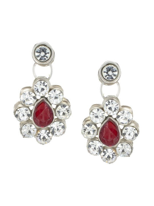 A pair of matching drop earrings, each secured with a post-and-back closure