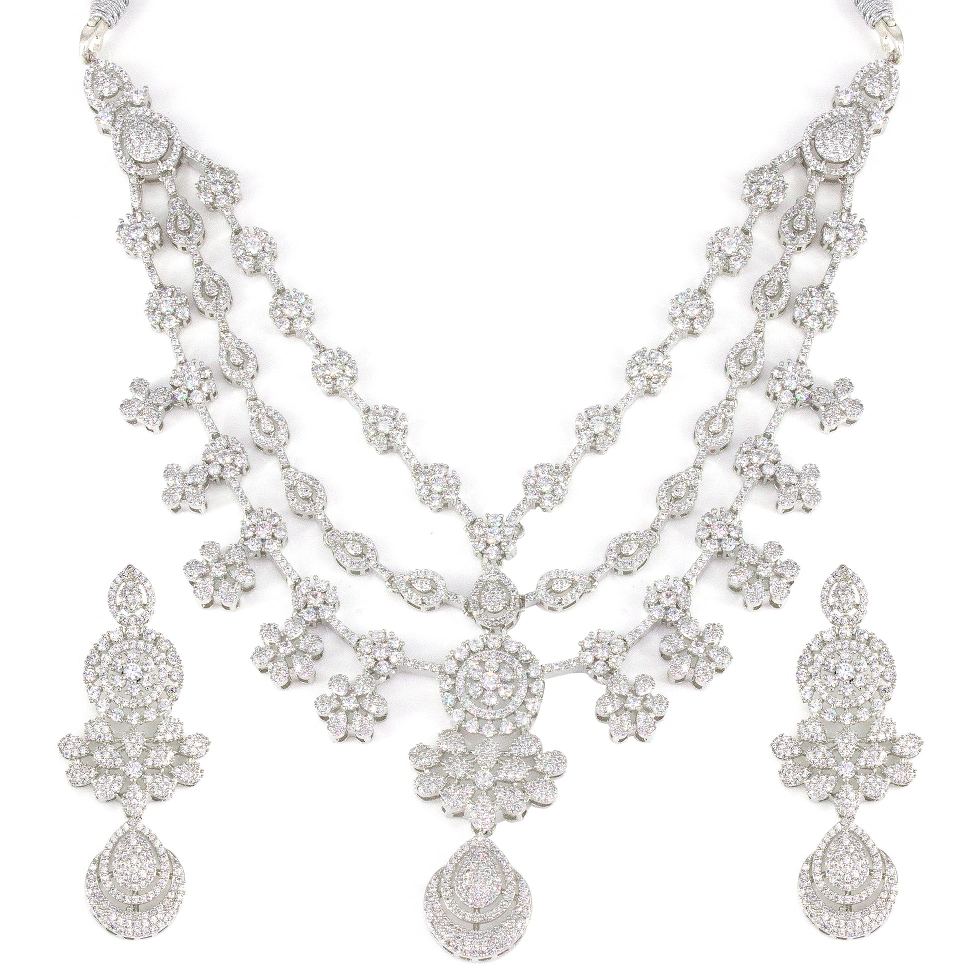 Silver Plated 3 Layer Cocktail AD Designer Jewellery Set