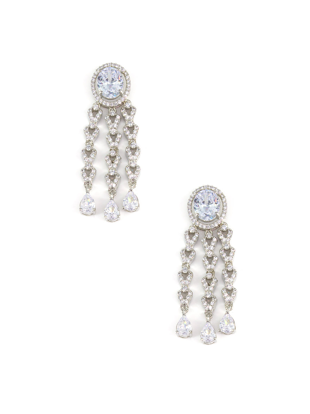 Silver Plated American Diamond Comes with S-Hook Closure and Matching Earrings with Post & Back Closure.