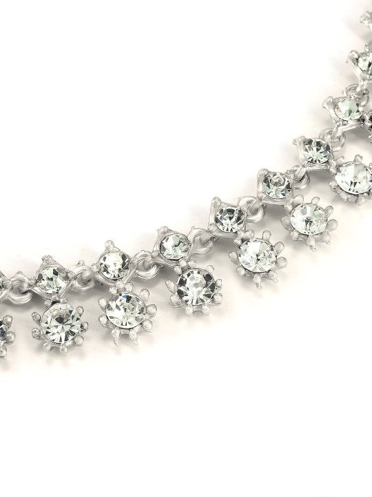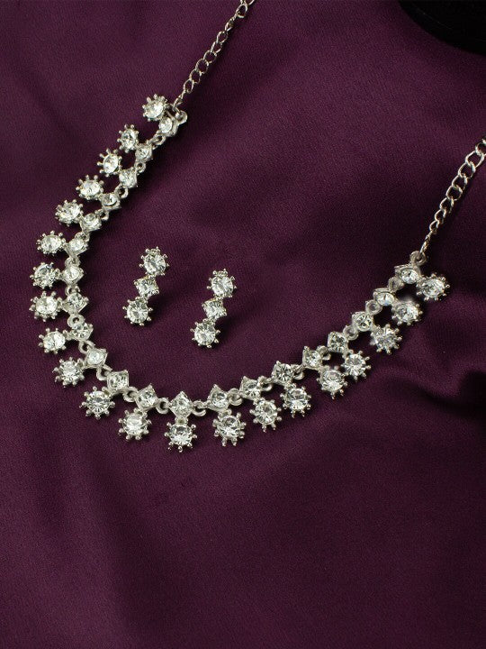 Rhodium Plated Teardrop American Diamond Studded Trendy Pendant Set