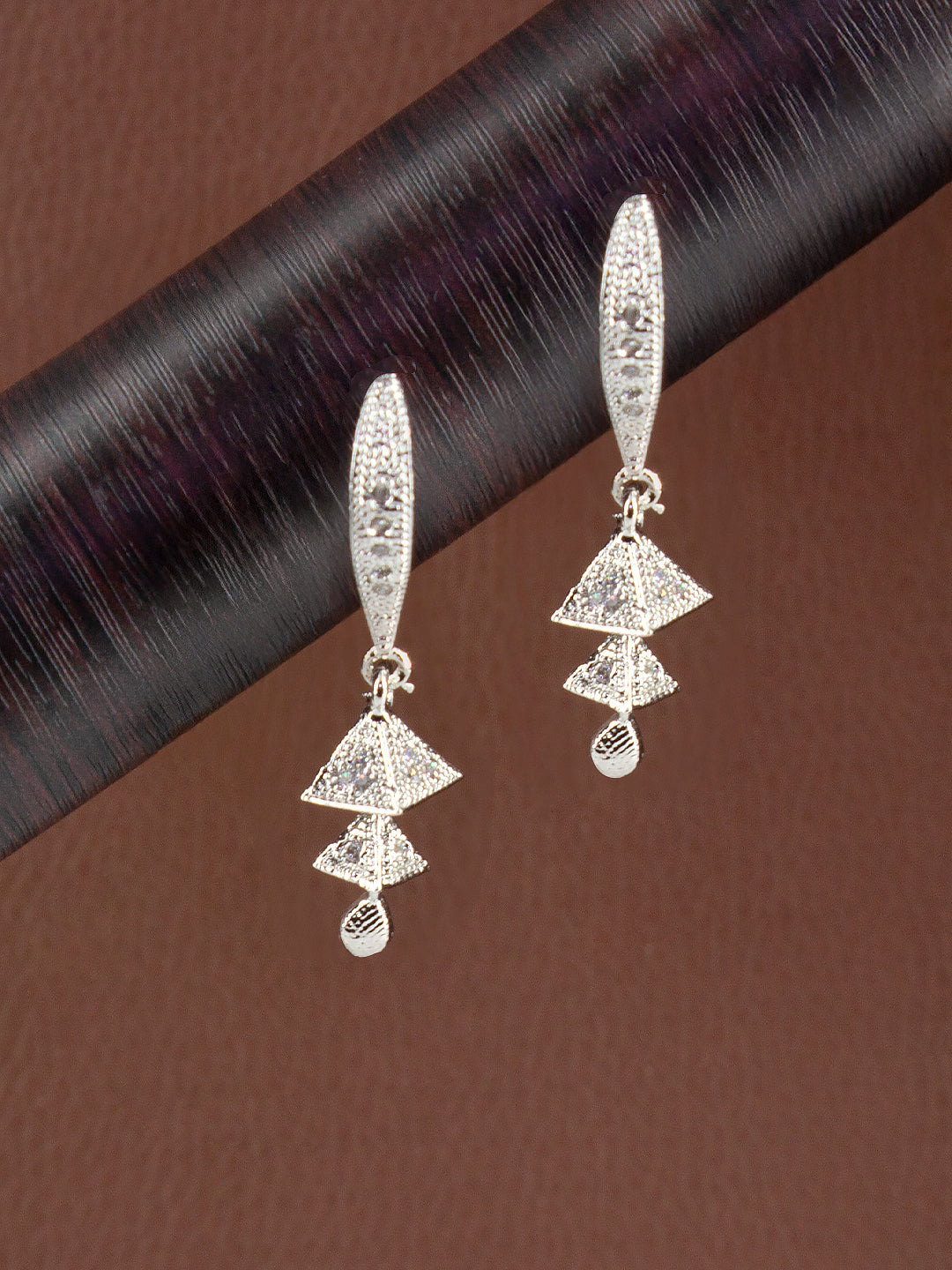 Silver Plated American Diamond Tringle Layered Drop Earring.