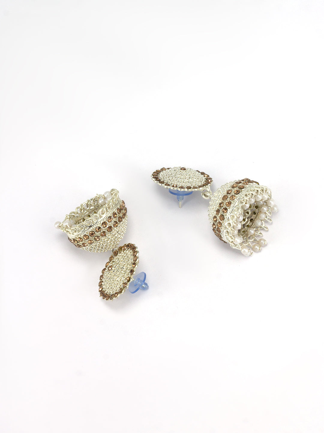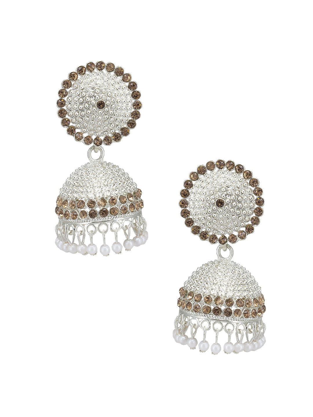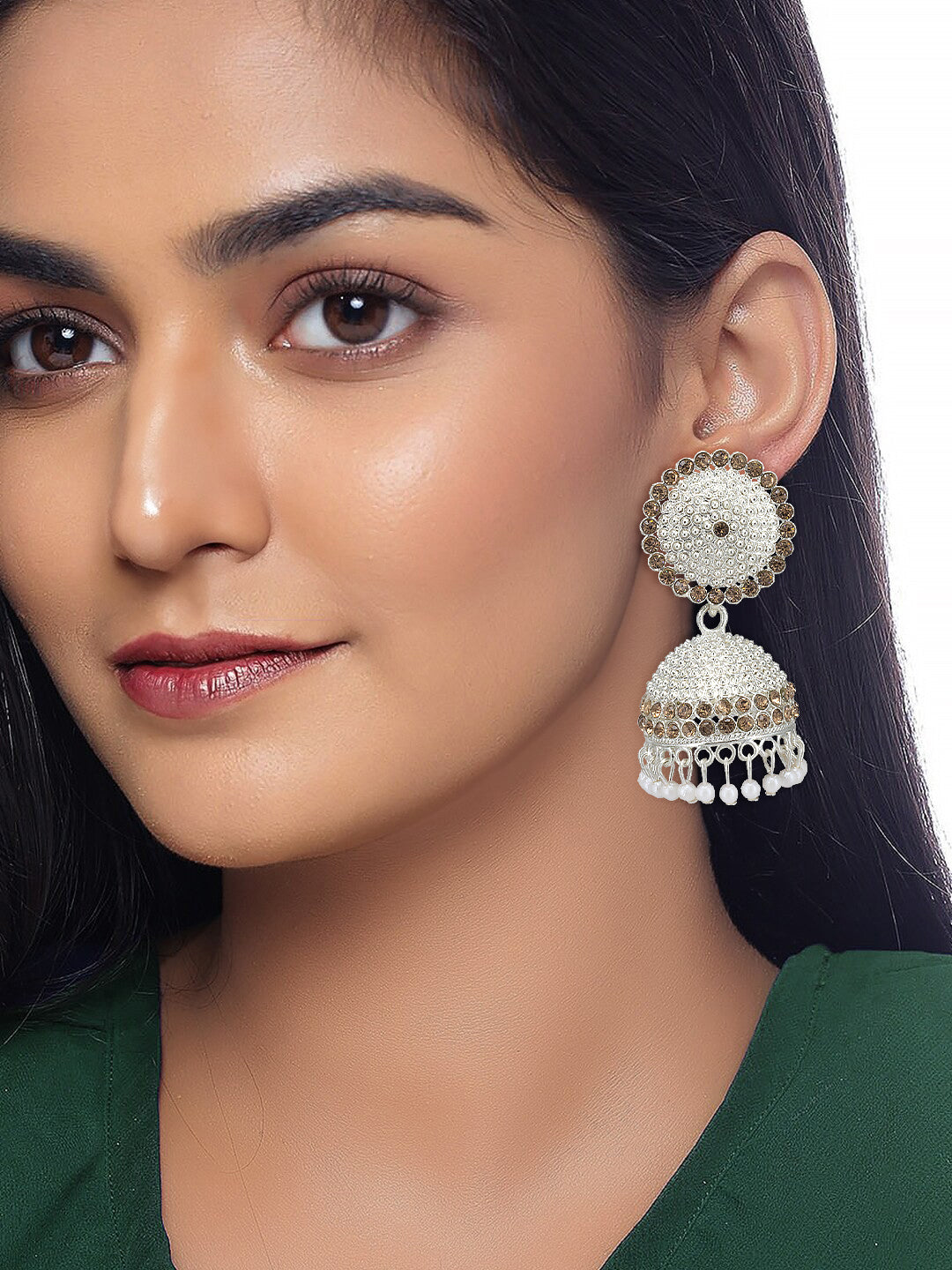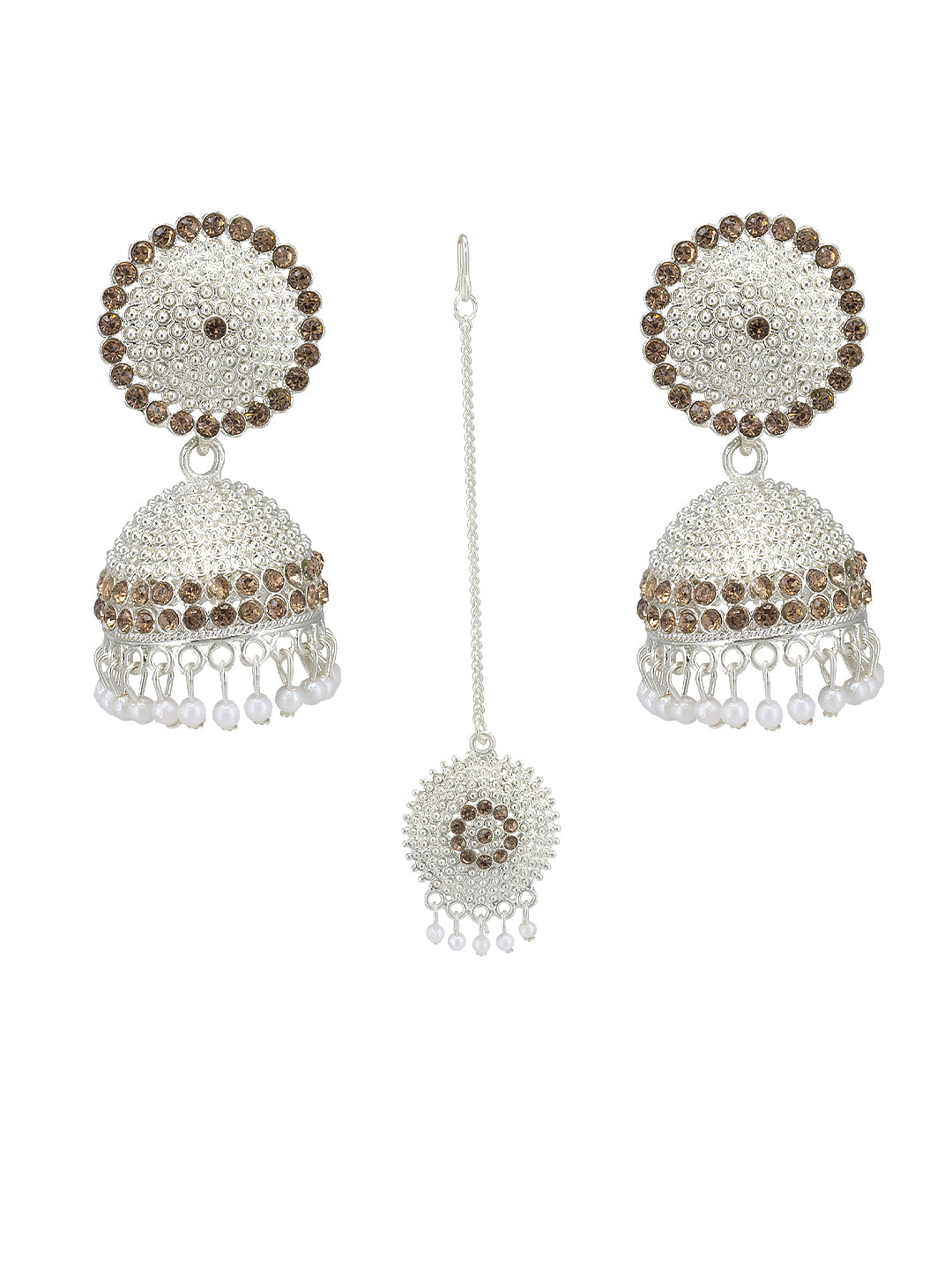 Silver Plated Artificial Stones & Beaded Maang Tika and Earrings