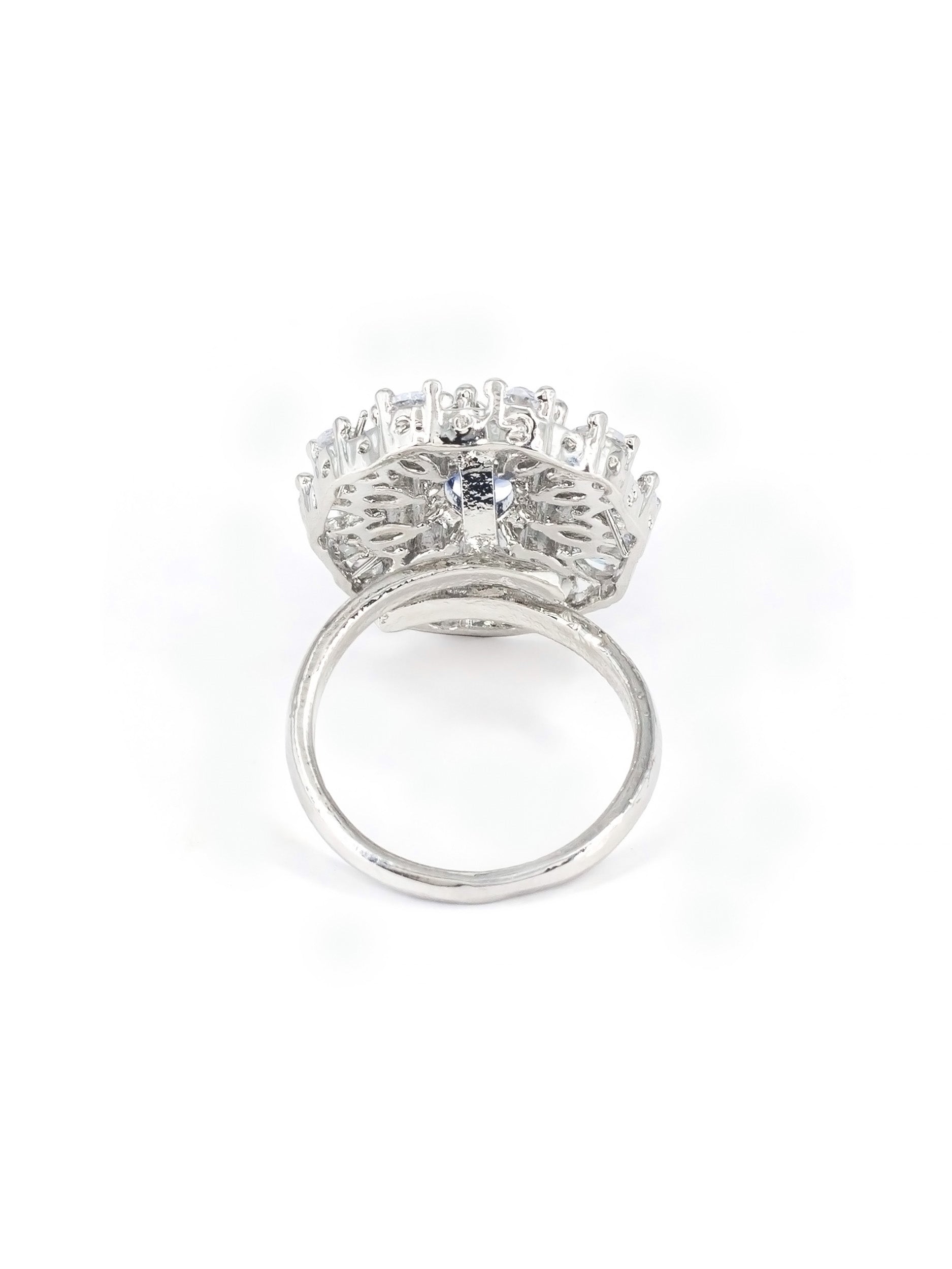 Rhodium Plated American Diamond Adjustable Finger Ring
