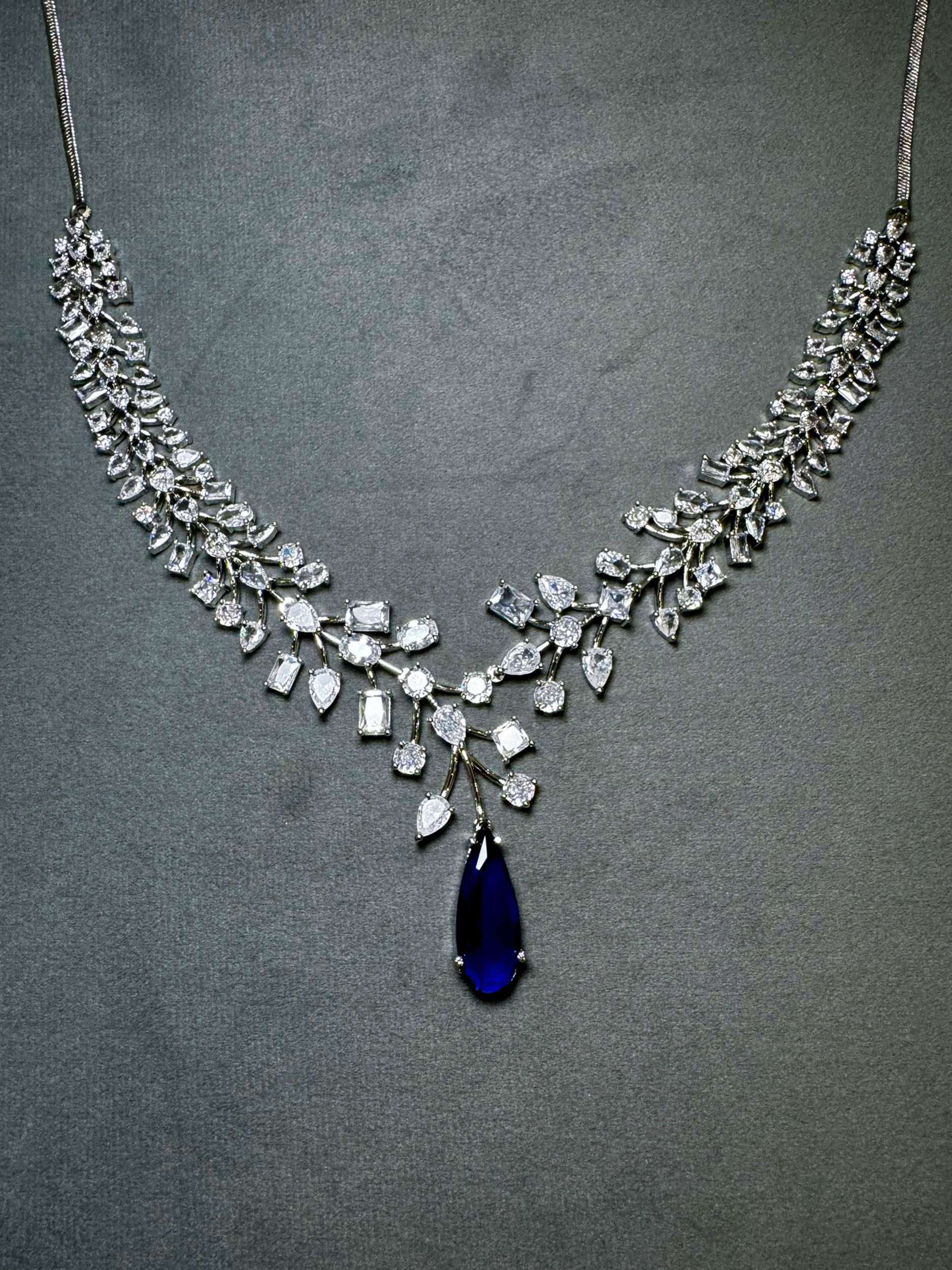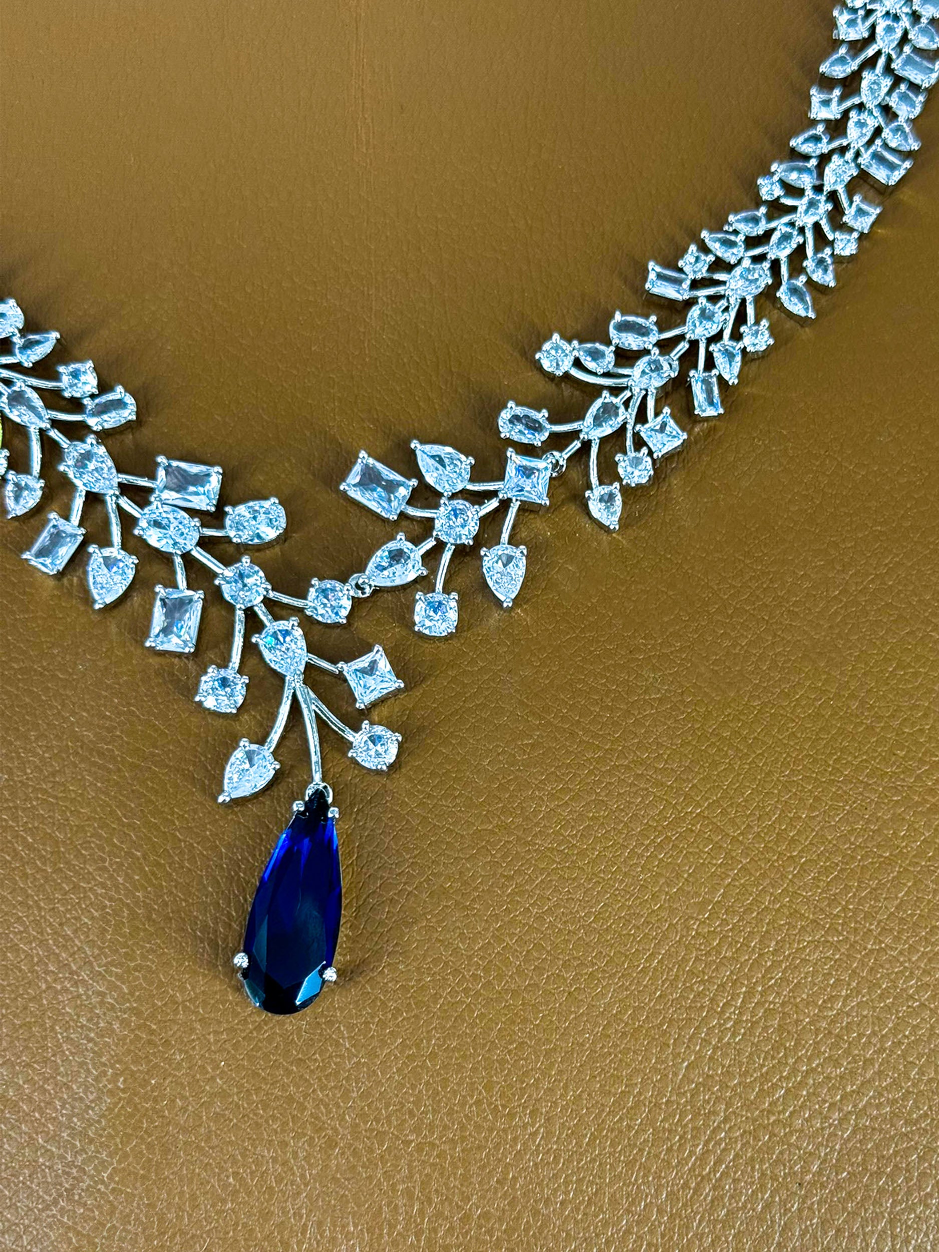 Silver Plated Blue American Diamond Statement Jewellery Set
