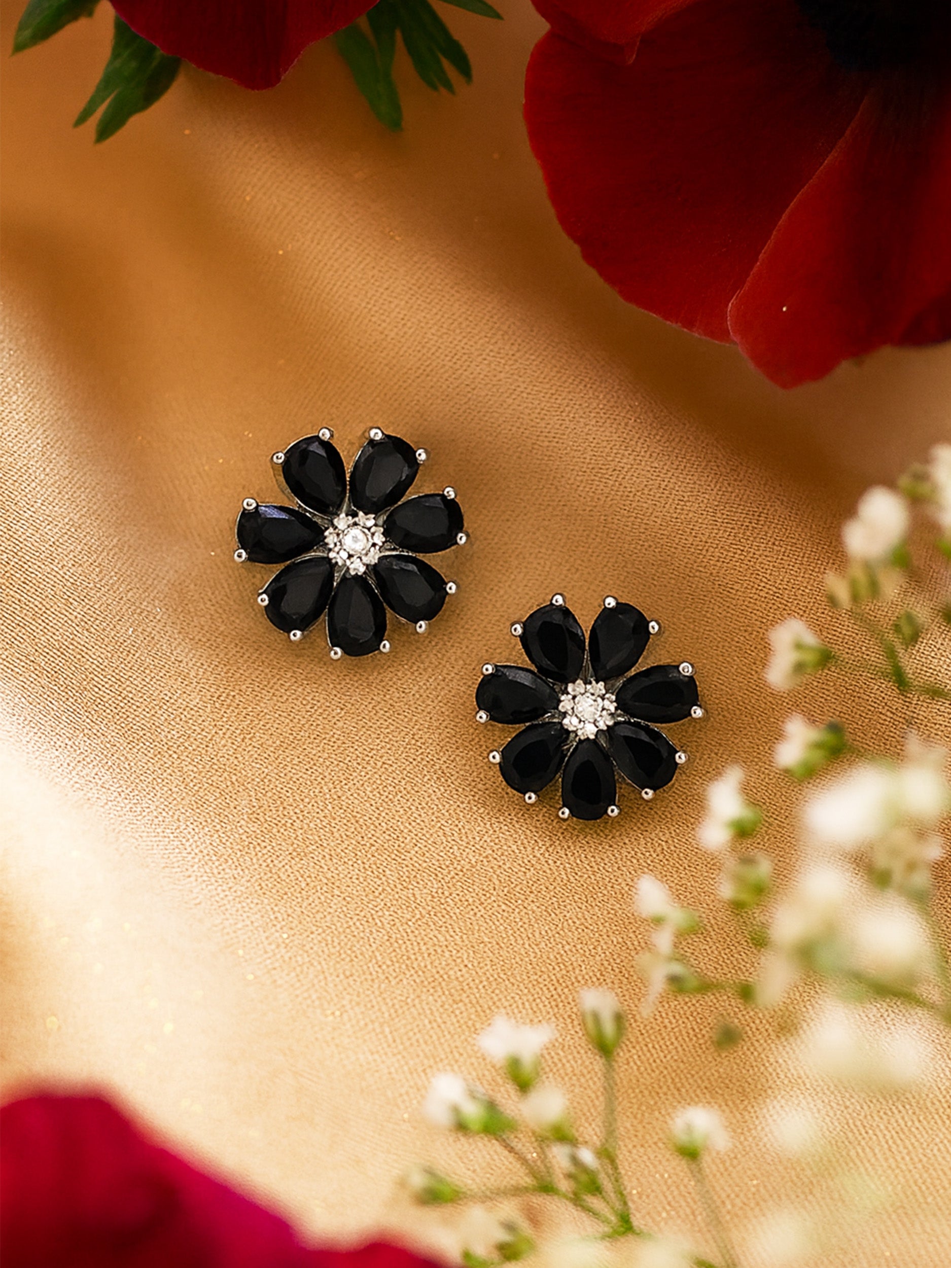 Silver Plated Blue Floral AD Stud Earrings Comes With Post & Back Closure For Easy Use.