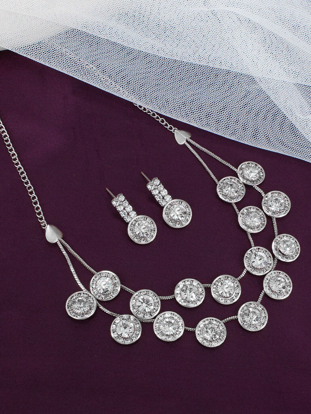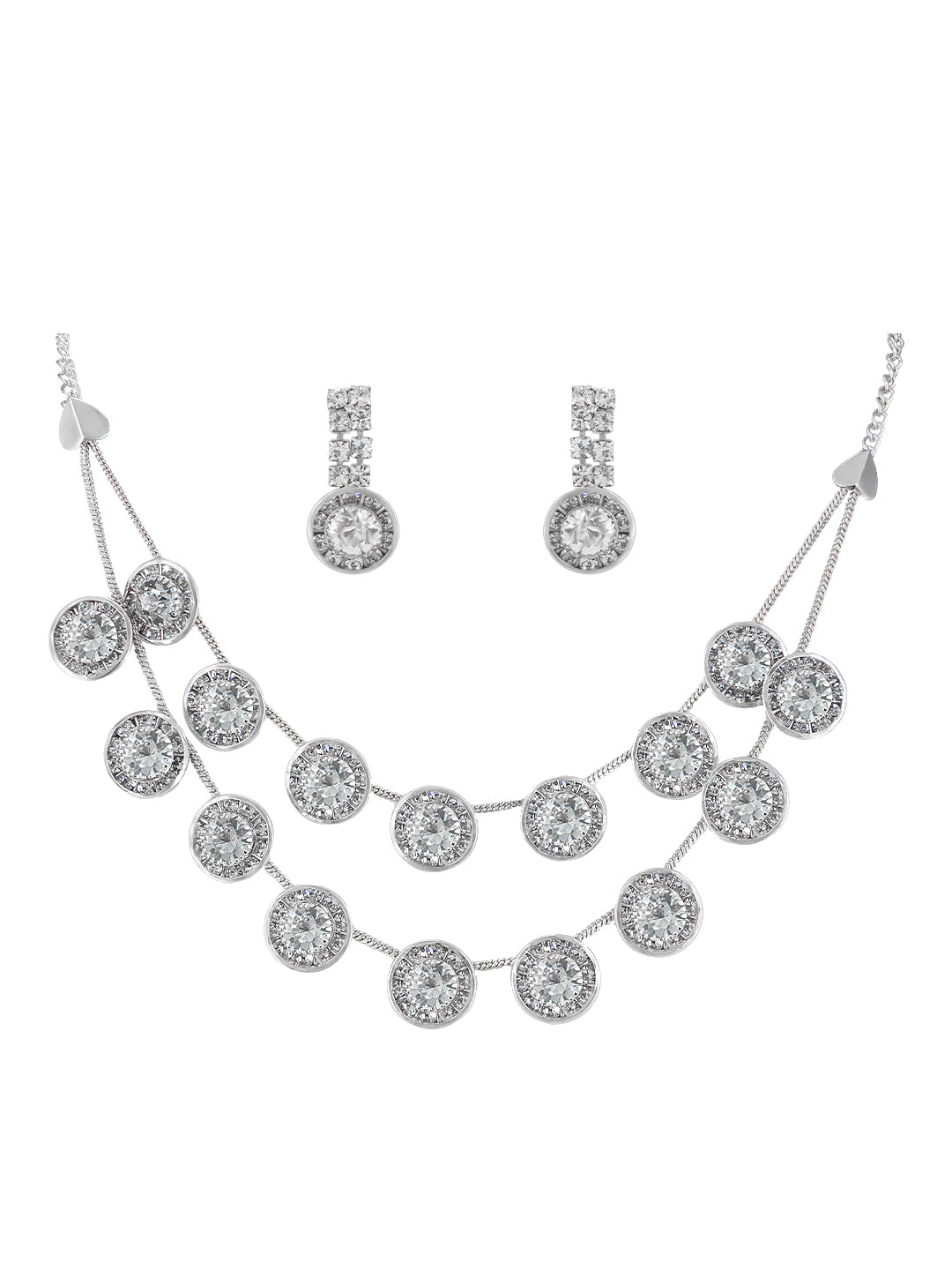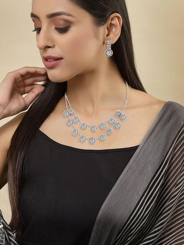 Silver Plated Coin Shaped Rhinestone Studded Jewellery Set