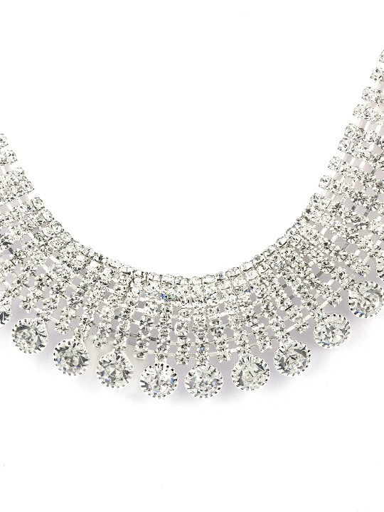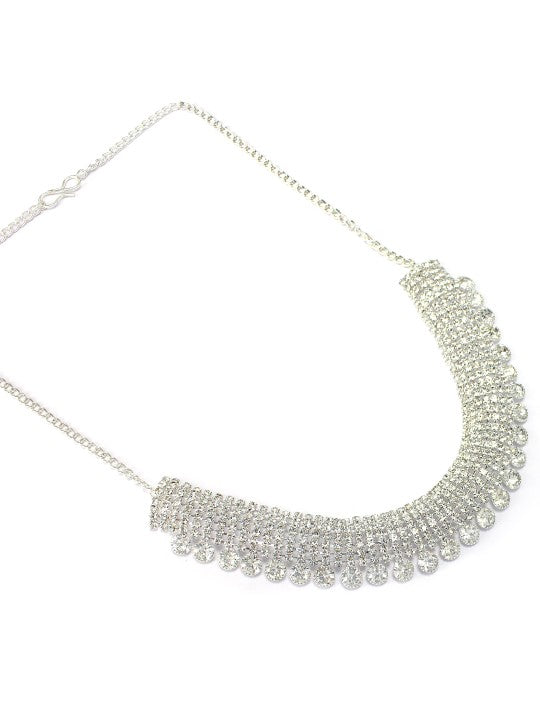 Silver-plated choker necklace, has Cubic Zirconia Studded details
