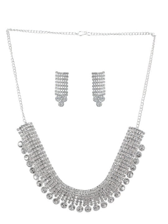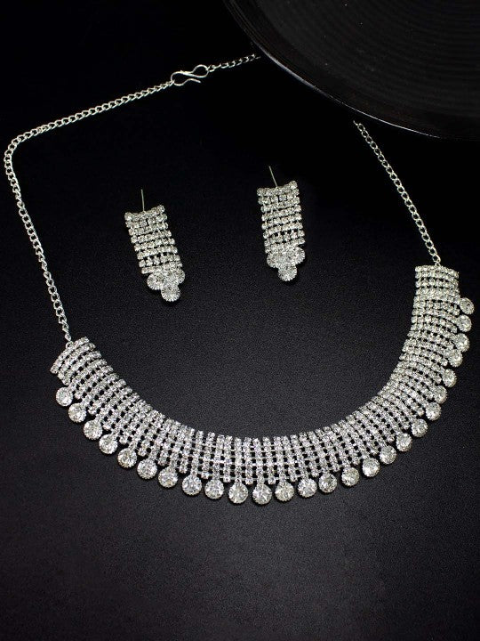 Silver-Plated Cubic Zirconia Studded Jewellery Set