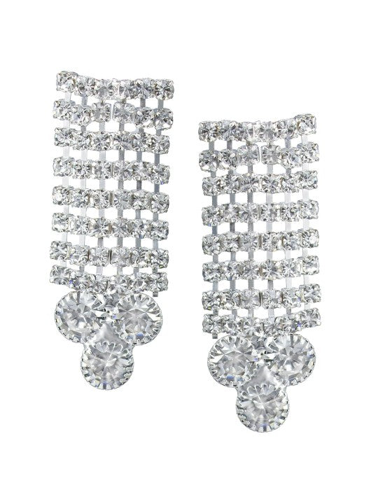 A pair of matching drop earrings, each secured with a post-and-back closure