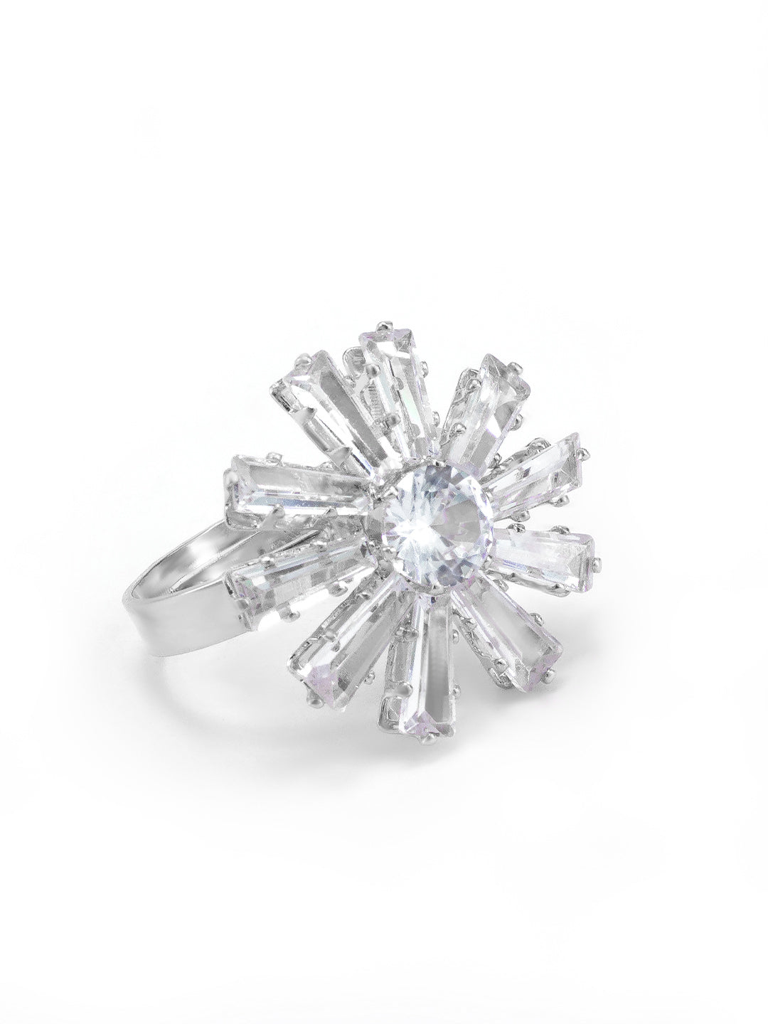 Rhodium Plated American Diamond Adjustable Finger Ring