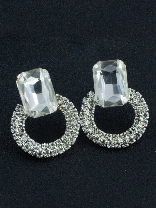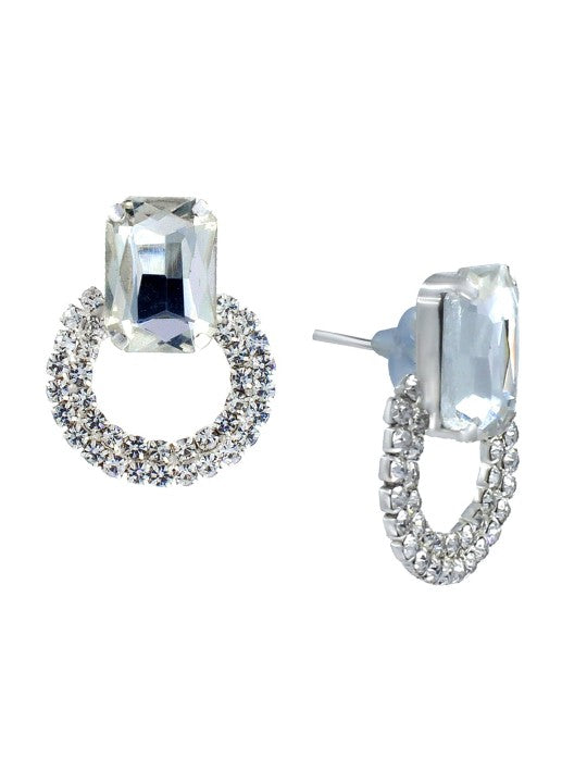 Silver-toned circular studs, rhodium-plated, has crystal & american diamond