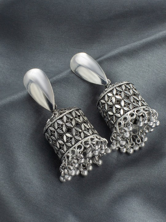 Silver Plated Dome Shaped Oxidised Jhumkas