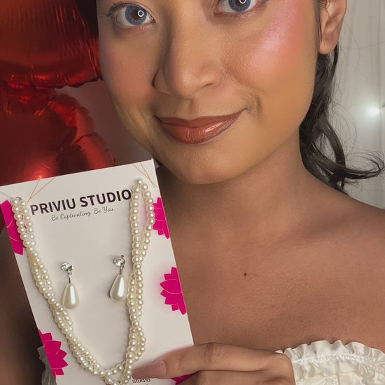 Silver Plated Double Layered Stone & Pearl Beaded Moti Mala Necklace & Earrings
